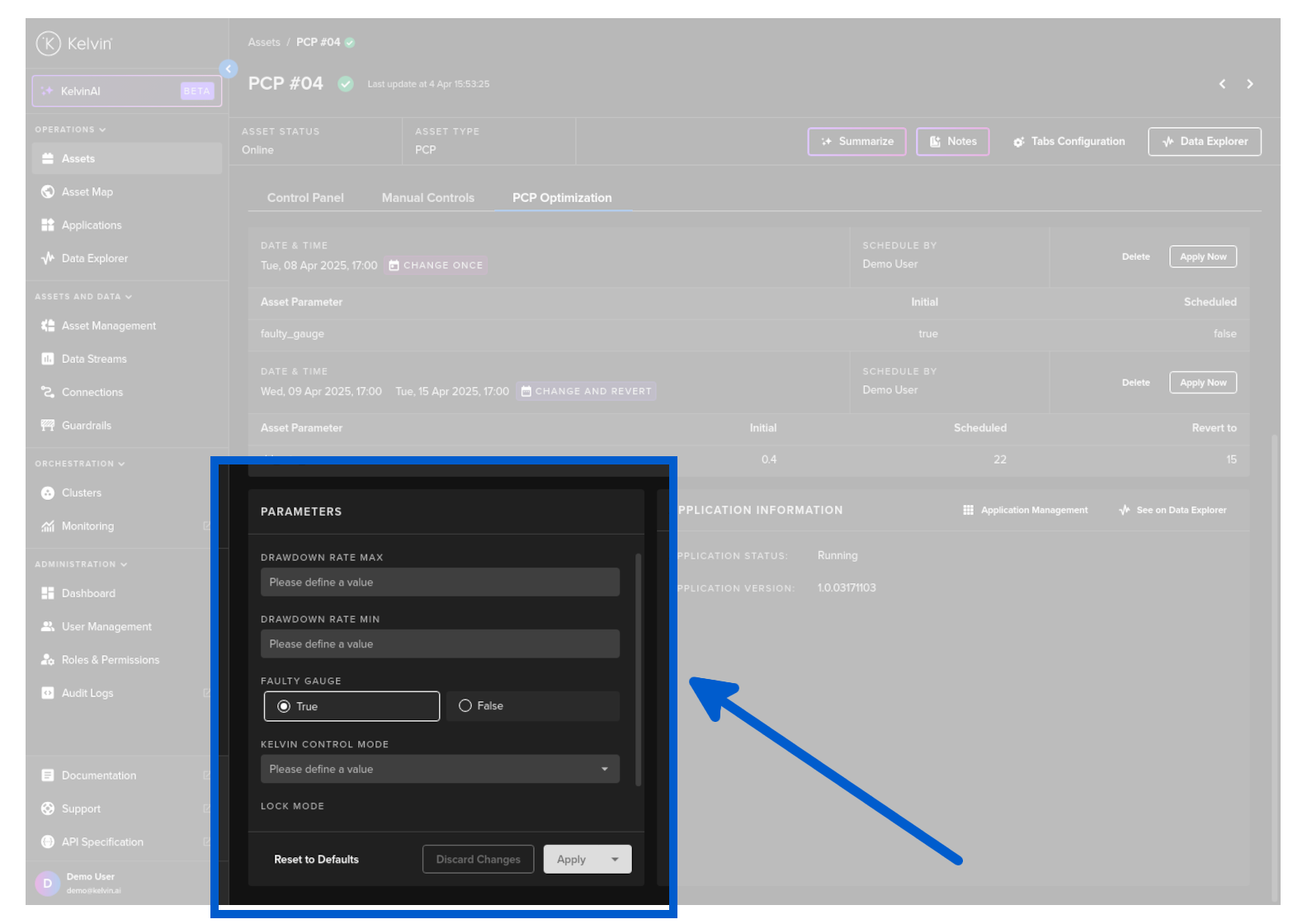 - View and Change the App Parameters for the Asset