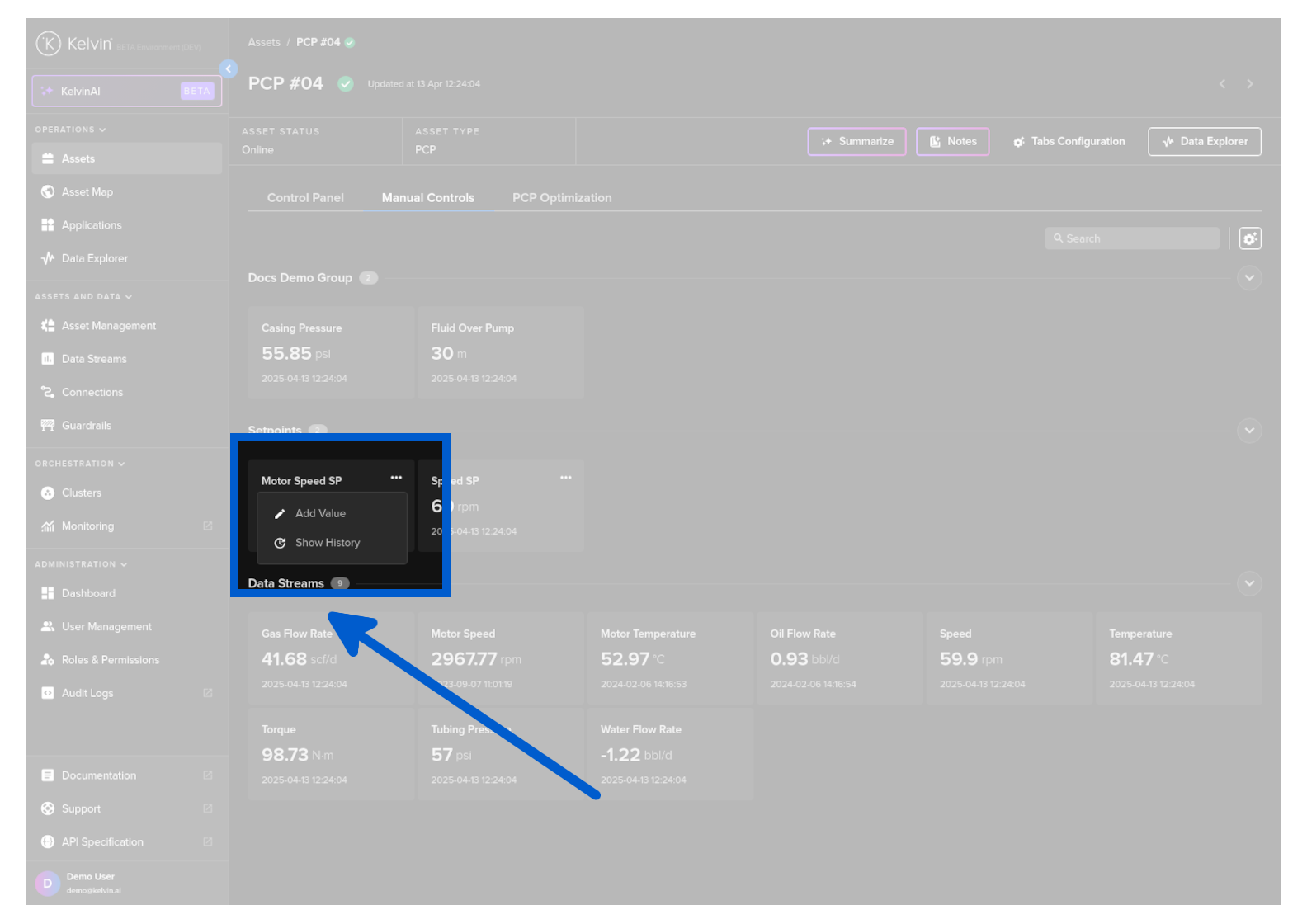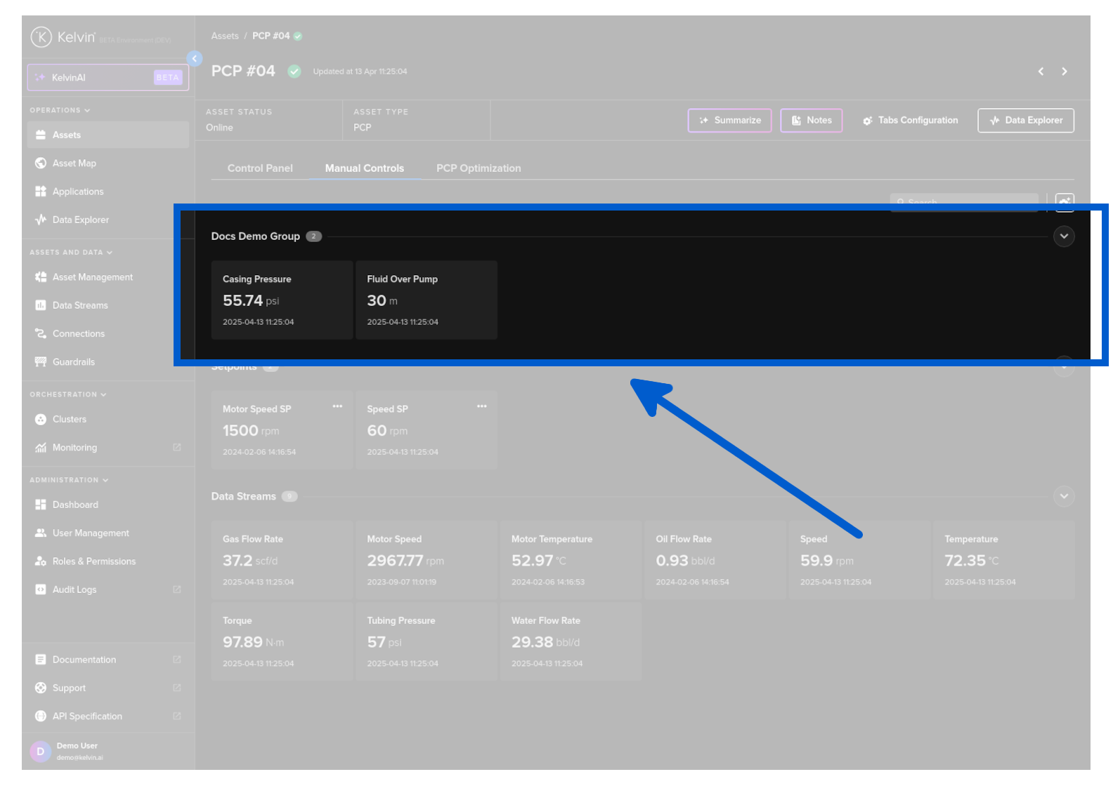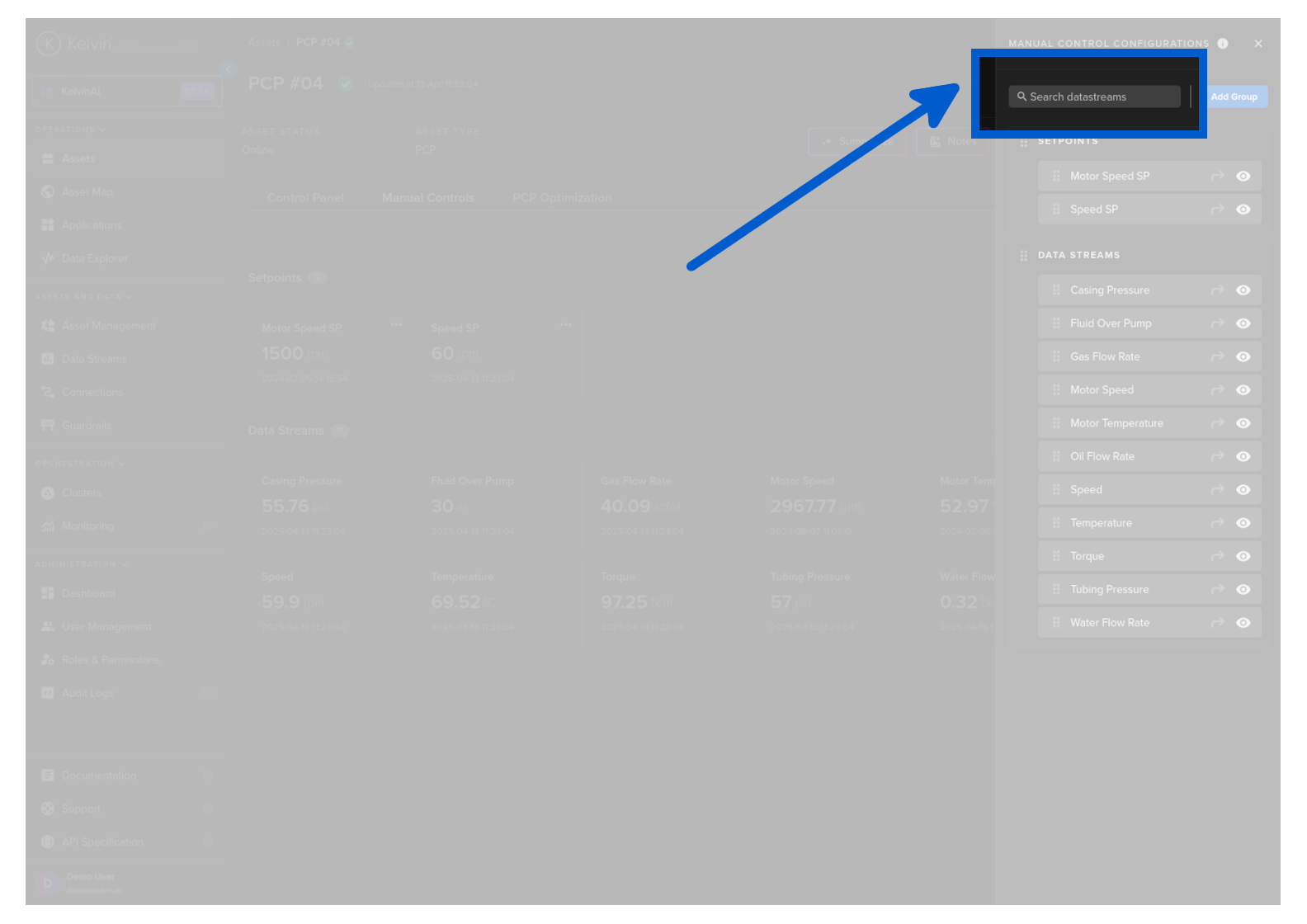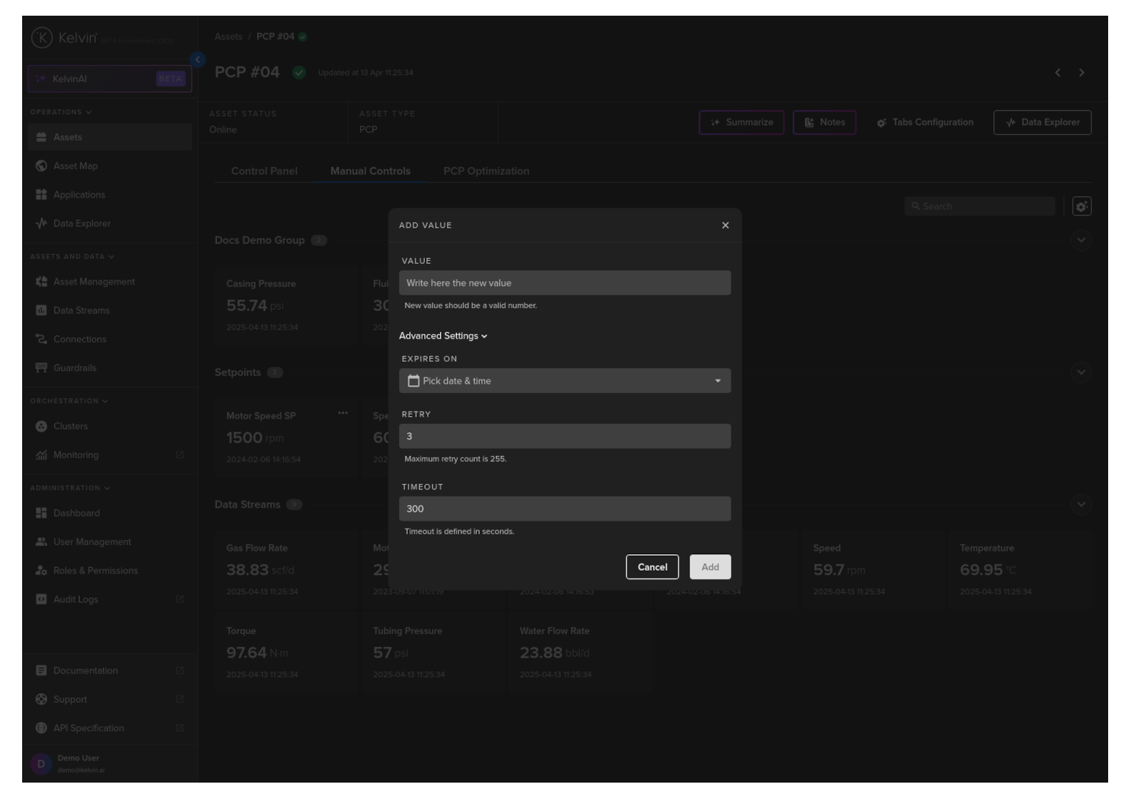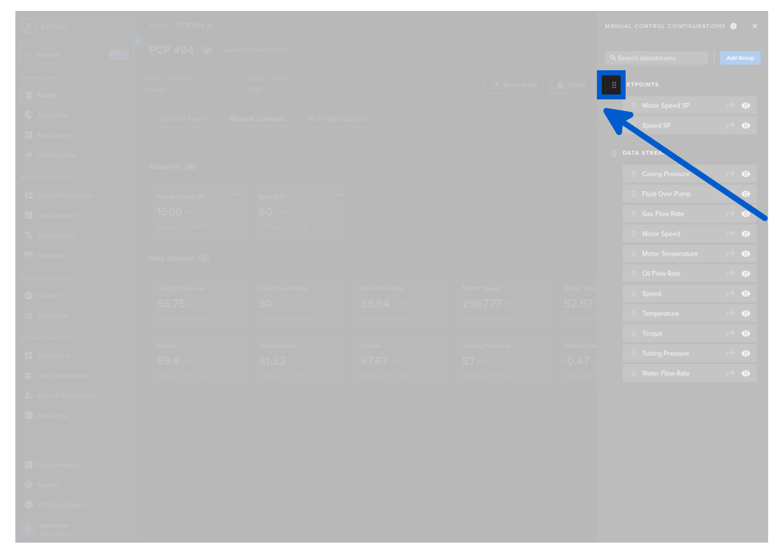 On this page you will learn about monitoring live values and changing values of Data Streams related to the selected Asset in Manual Controls in Kelvin UI.