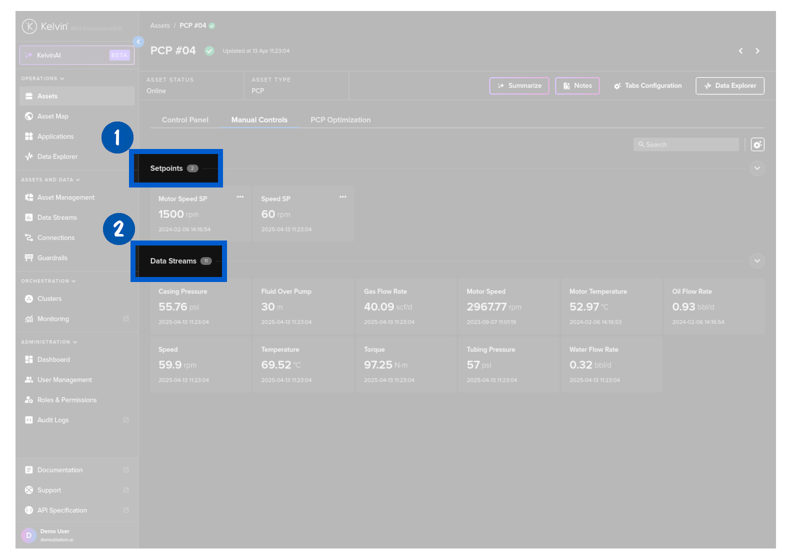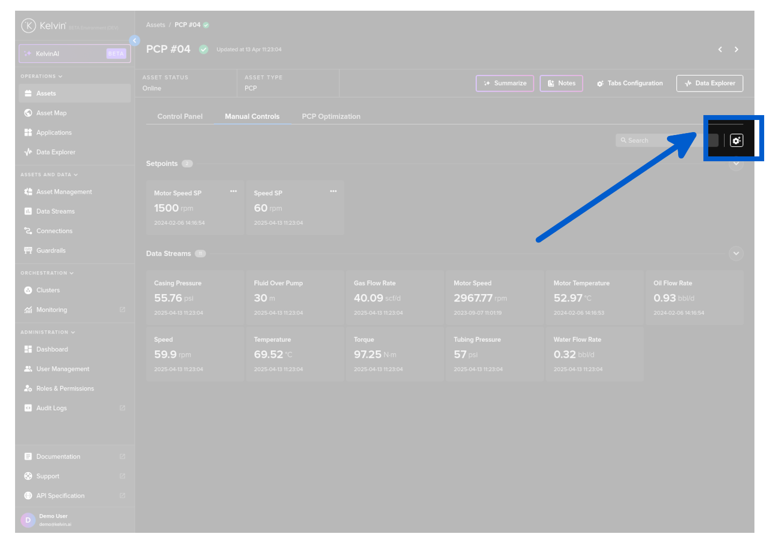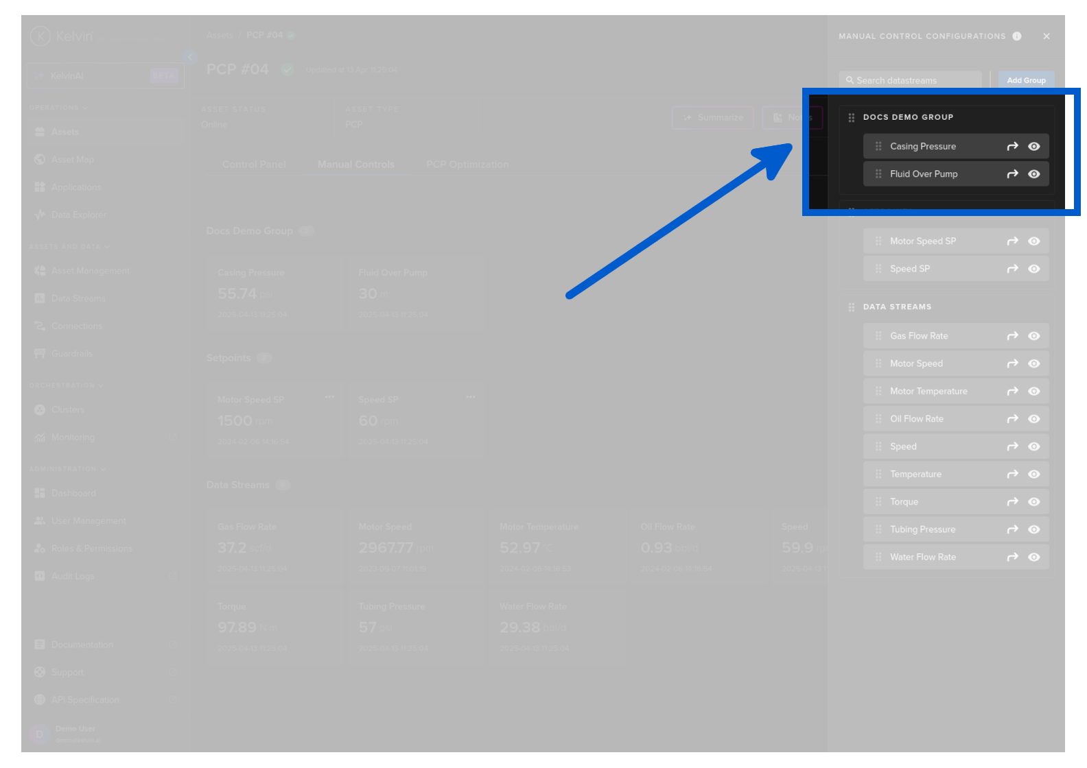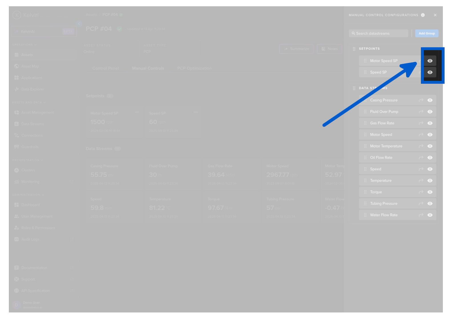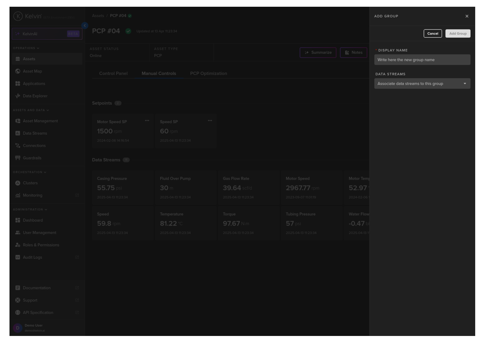 On this page you will learn about monitoring live values and changing values of Data Streams related to the selected Asset in Manual Controls in Kelvin UI.