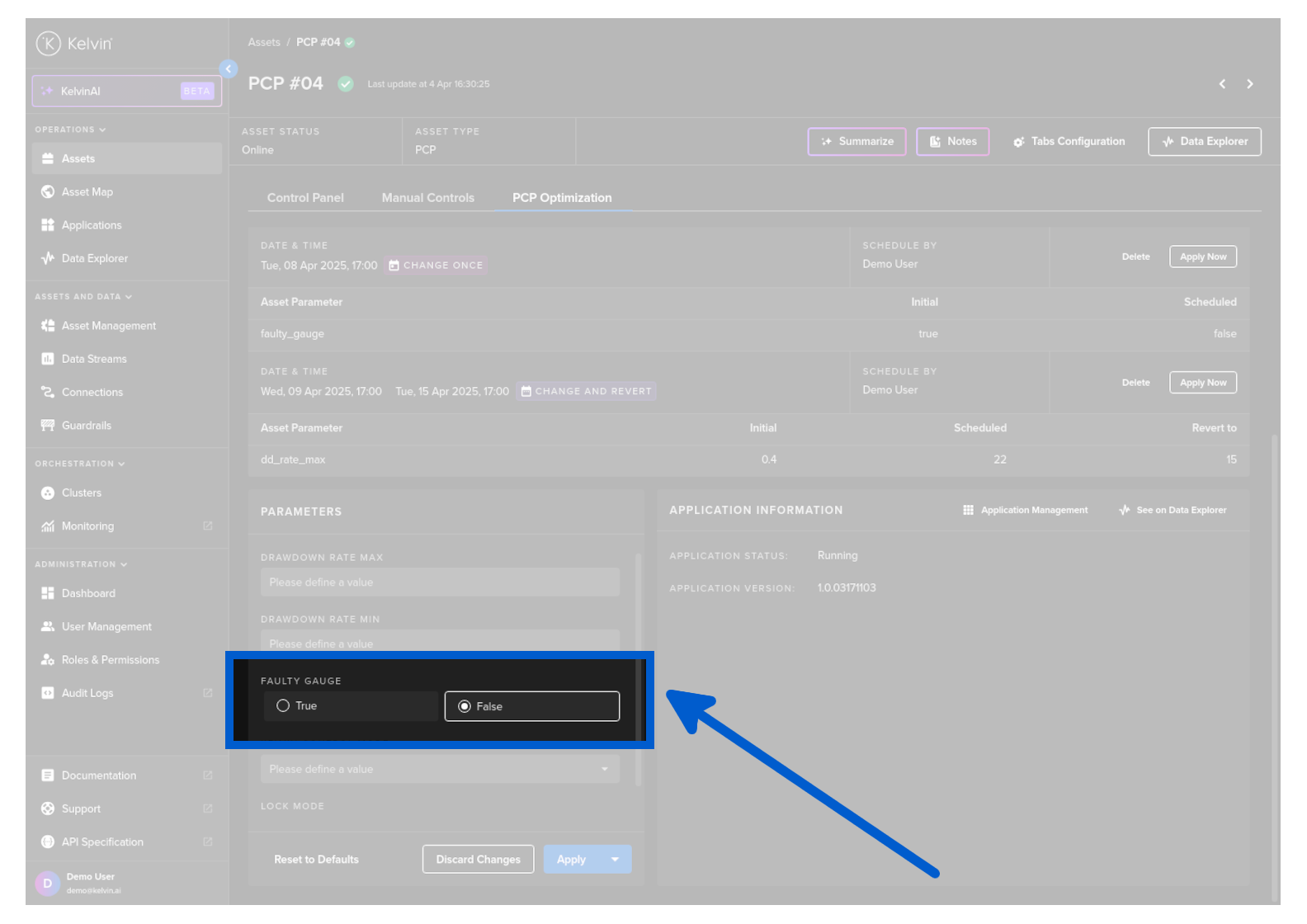 When controlling your Assets with Kelvin SmartApps™, there are times when temporary parameter setting adjustments are necessary for optimal performance, such as during planned maintenance periods or planned production changes.