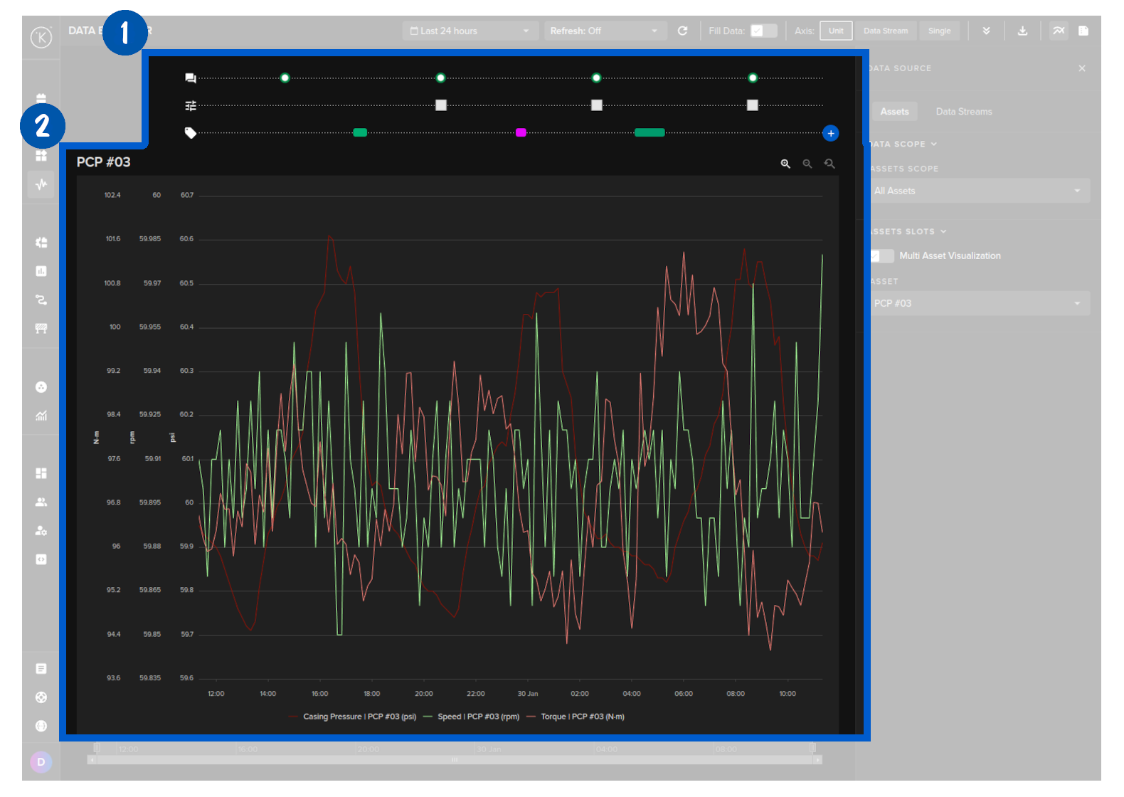 In Data Explorer you can see the historical graphical data about one or more Assets and all the Data Streams associated with the asset.