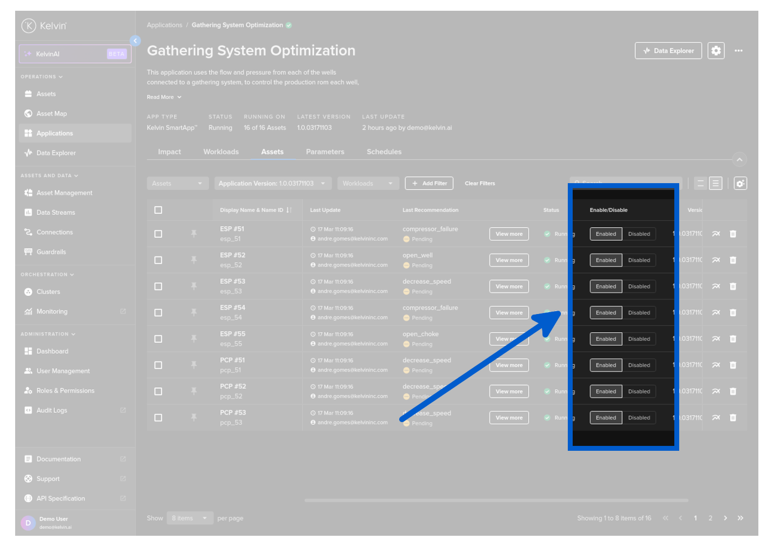 In Kelvin SmartApps™ you have the ability to enable or disable each Asset individually in a Kelvin SmartApp™.