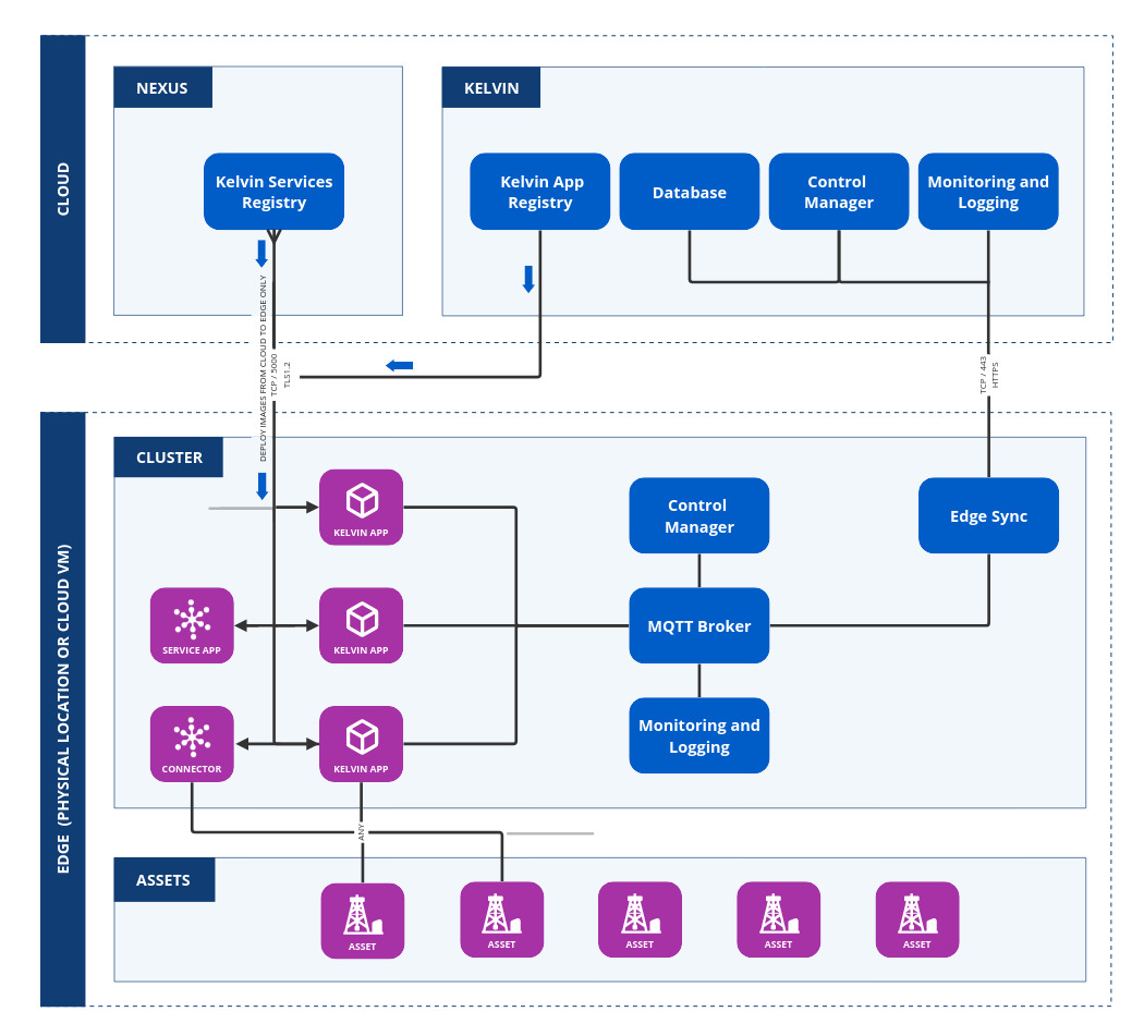 On this page you will learn about communications between Kelvin's Cloud services and Edge systems.