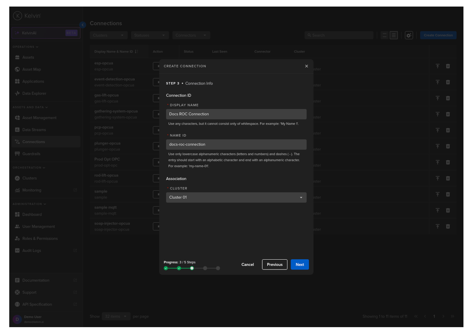 Then in Kelvin UI under Connections you will see your Connection deployed and running.