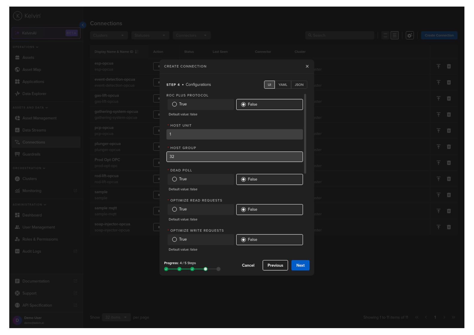 You can add an Emerson Operations Controller (ROC) connection through the Kelvin UI, Kelvin SDK and Kelvin API.