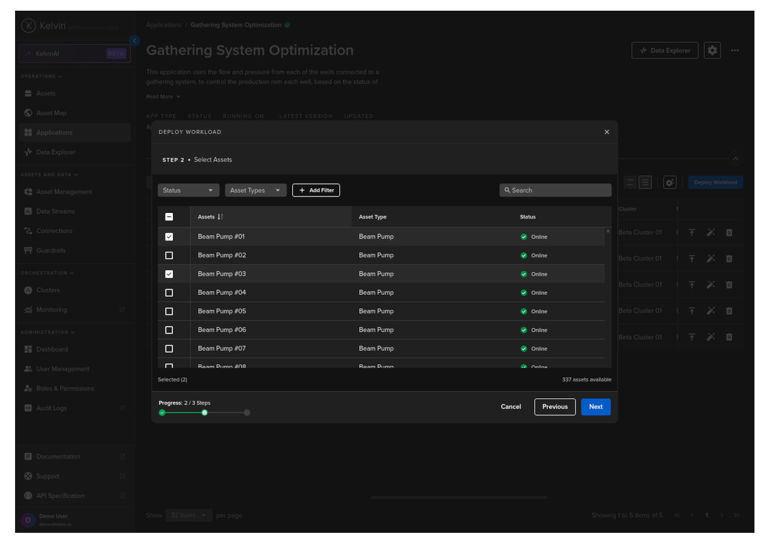 In Step 2 select the Assets you want to add to the Kelvin SmartApp™ then click the Next button.