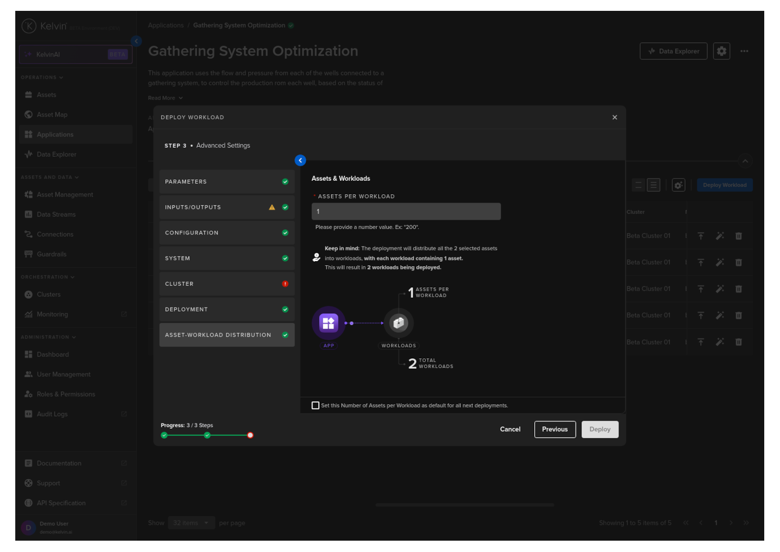 Asset-Workload Distribution : Define how many Assets are controlled by each Workload that is deployed.