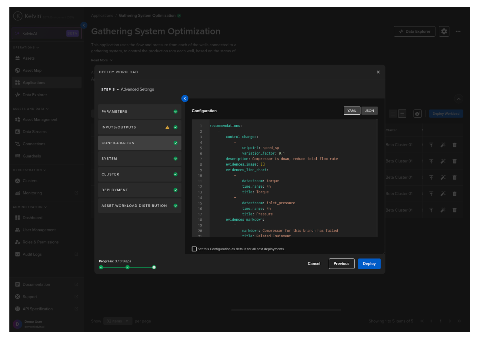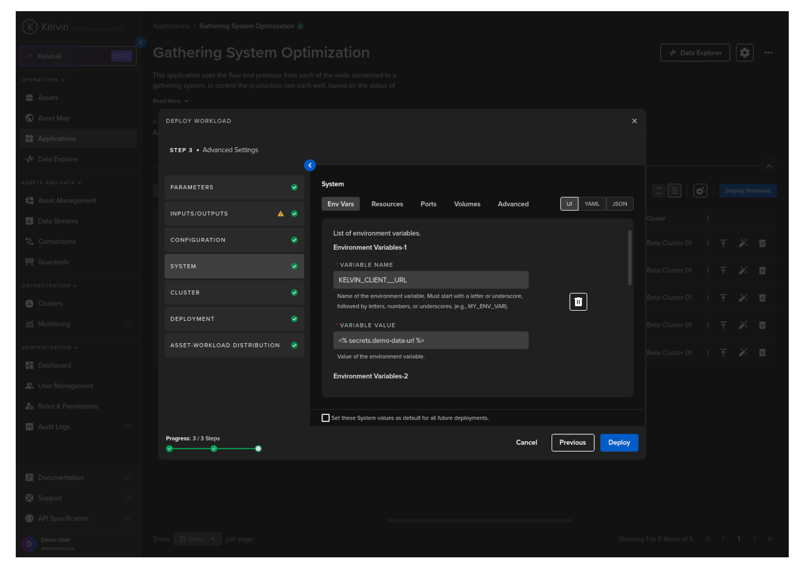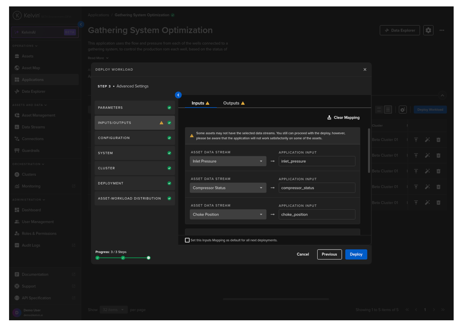 Link the Asset's Data Streams to the Kelvin SmartApp™ input/output variables.