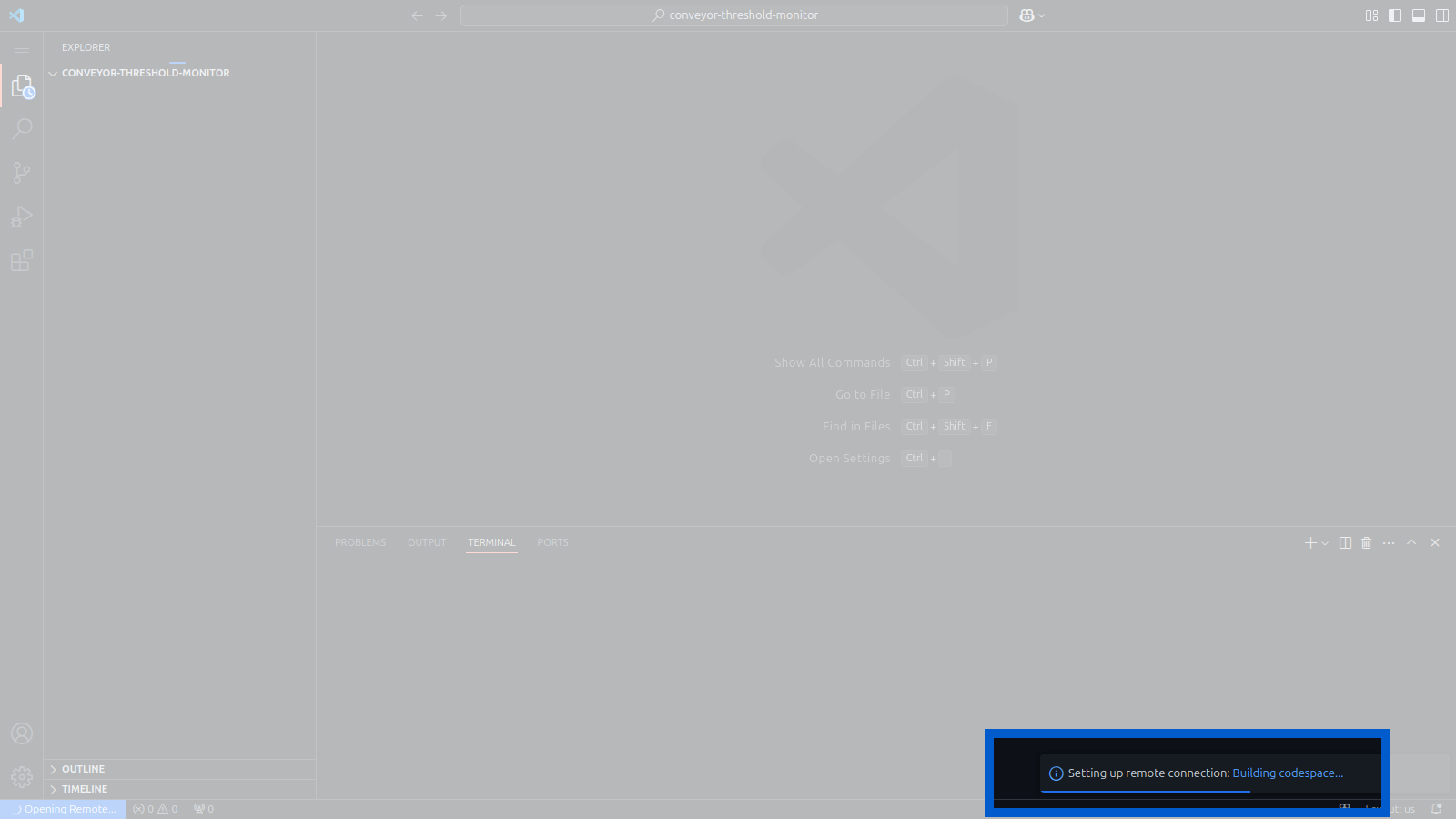 Click "Create codespace on main" button. A new tab will open up in GitHub codespace and start to install the environment.