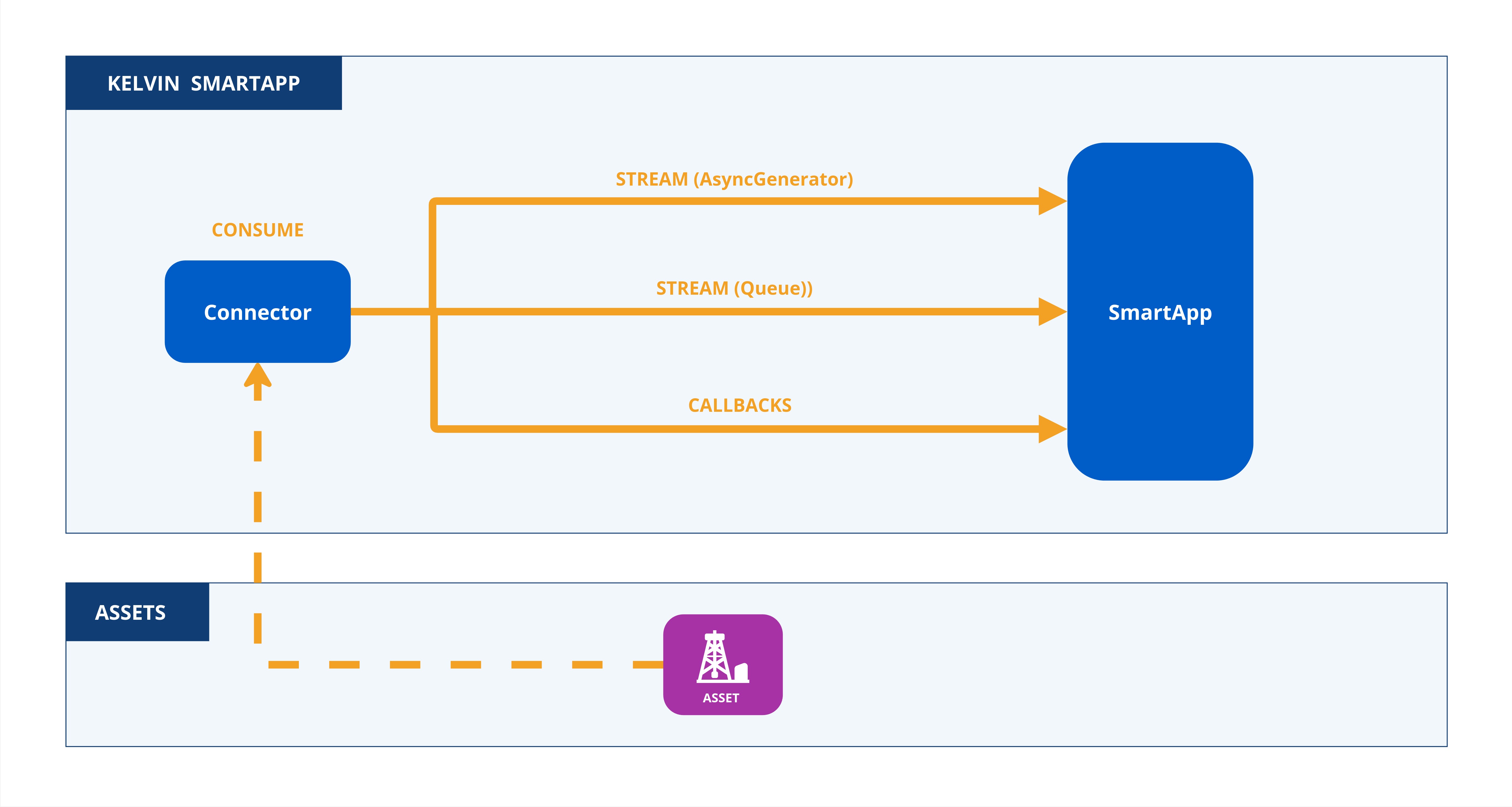 Timeseries data from Assets can be served to the Kelvin SmartApp™ in multiple ways, depending on the preferred data consumption method.