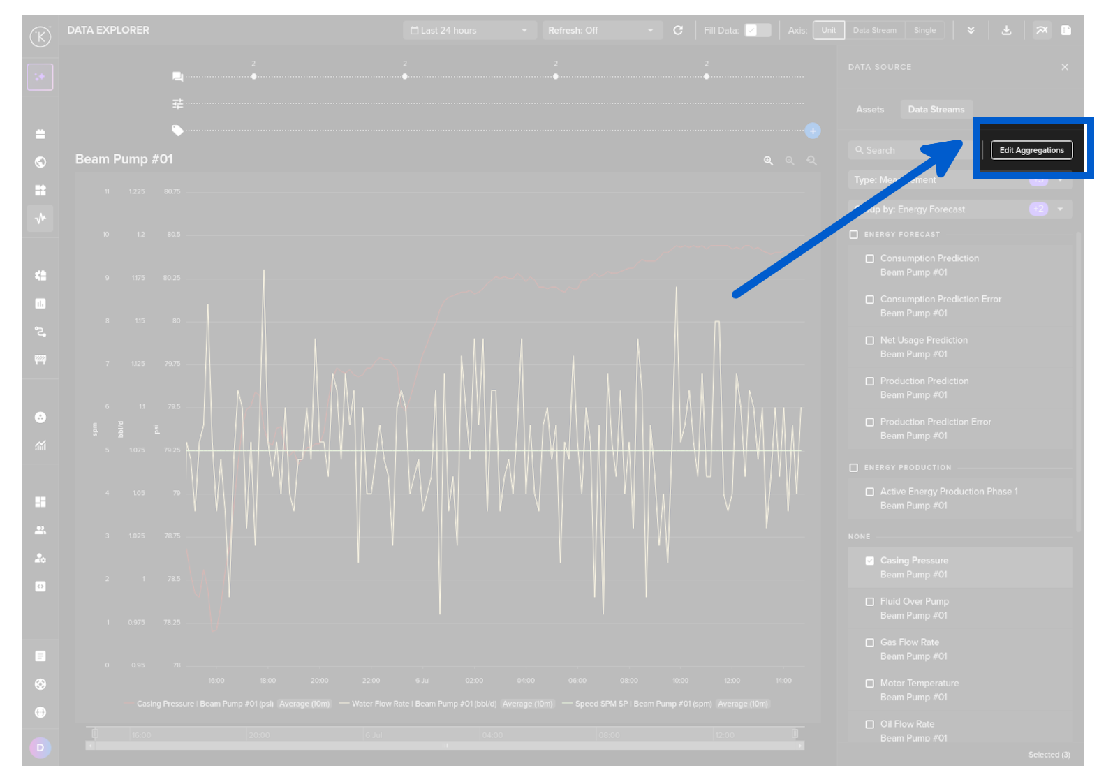 To aggregate, click on the Edit Aggregation button and select the aggregation for the target Data Stream.