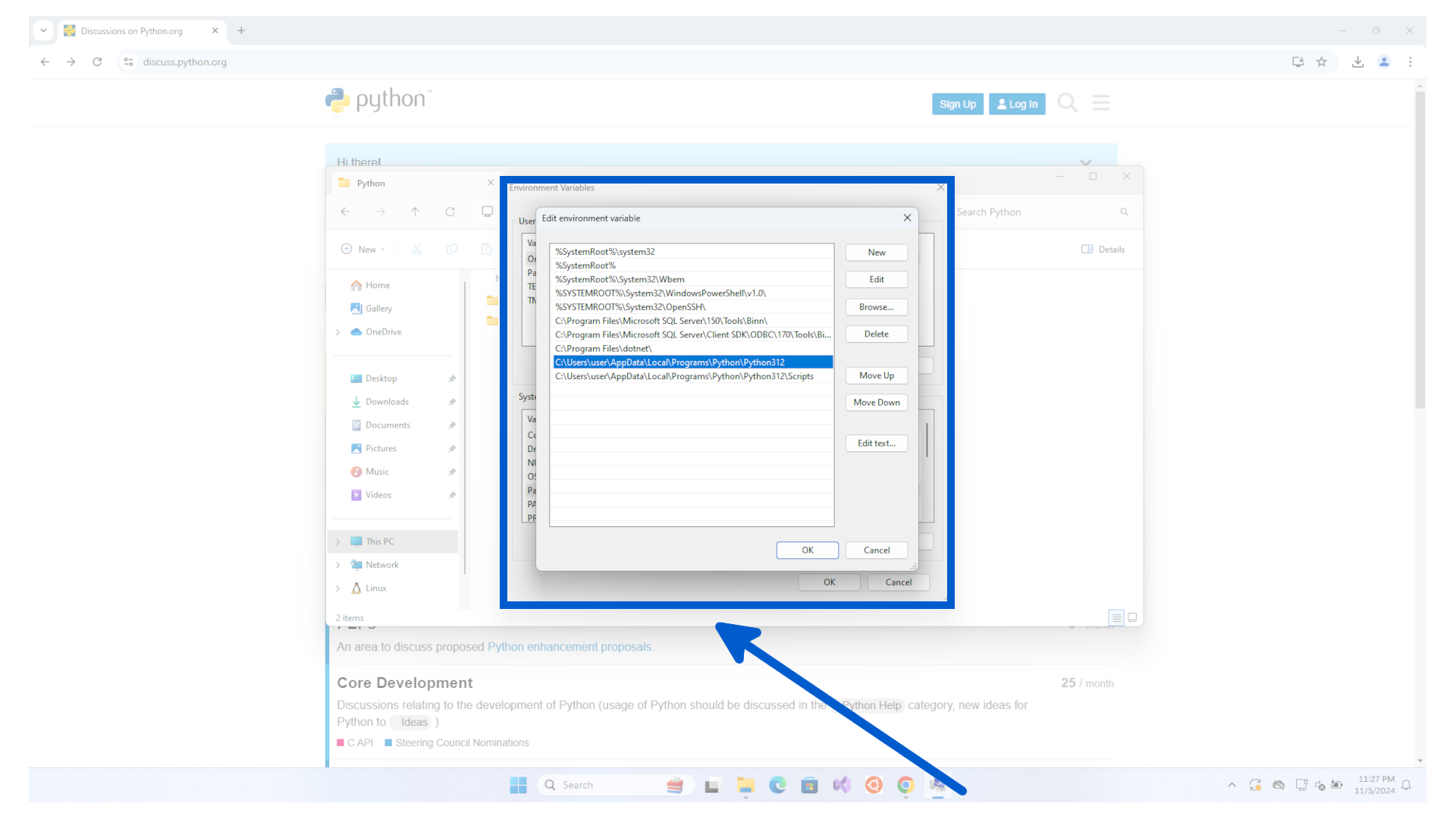 Now the links to the Python program will not work properly in the terminal, so we will need to add these to the Windows environment variable.