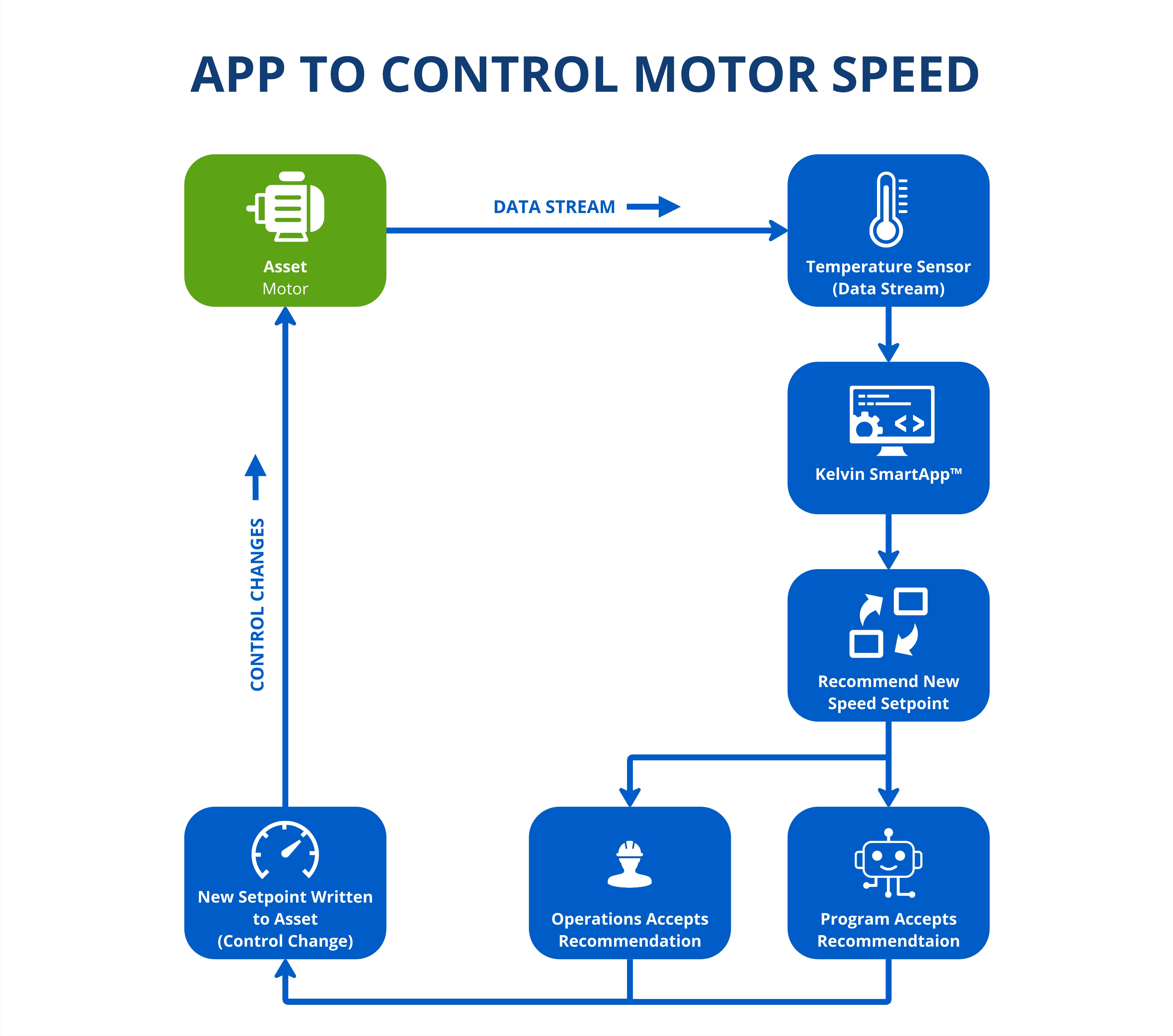 Then using the Kelvin UI, the Operations Team will be able to set the parameters of the Kelvin SmartApp™ to decide whether the recommendation is automatically accepted, where the control change will be immediately applied to the motor, or an approval has to be manually added to the recommendation before the control change is done.