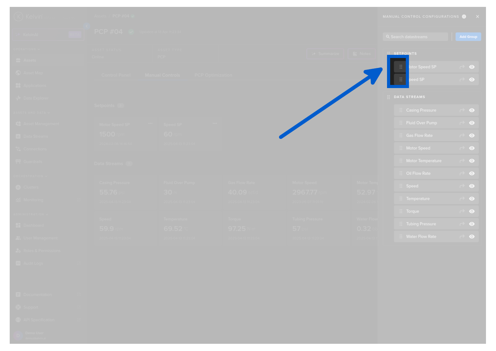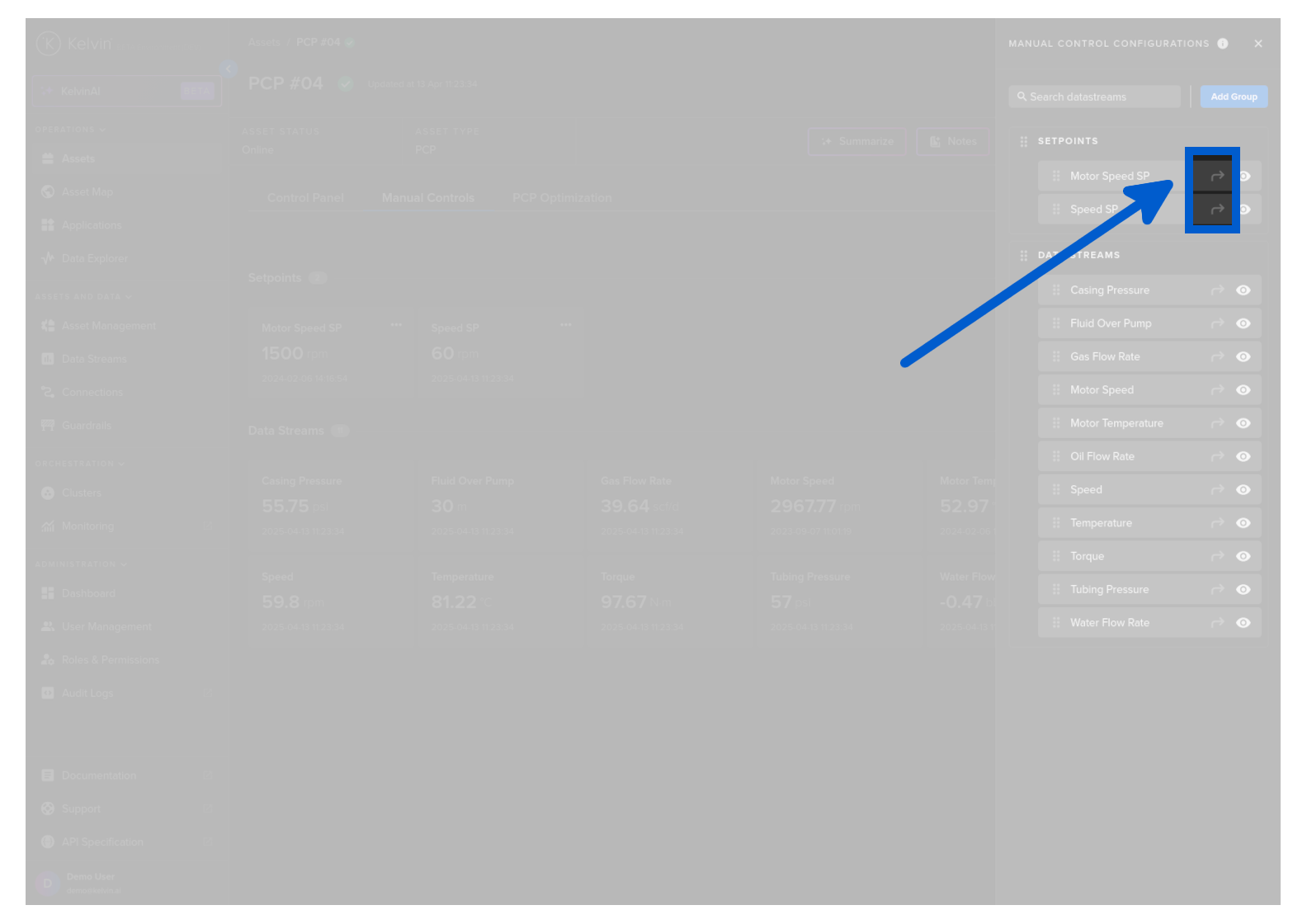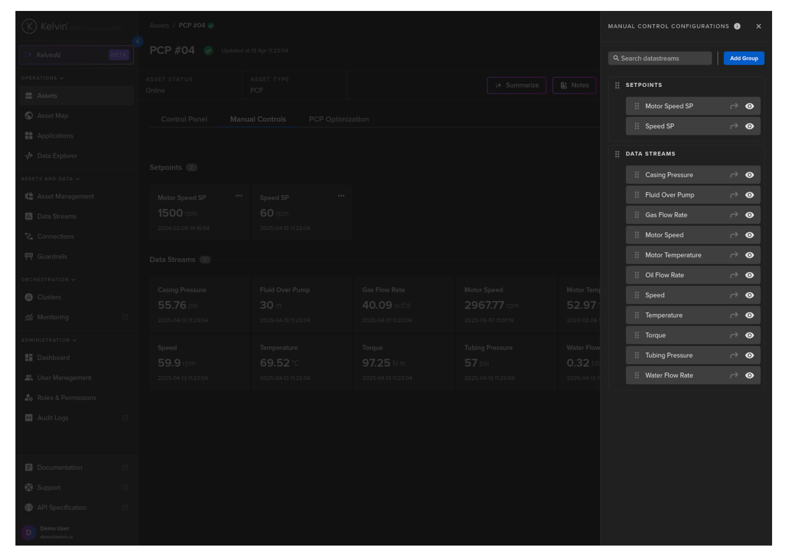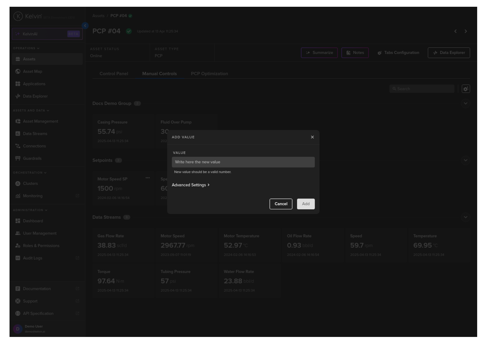 On this page you will learn about monitoring live values and changing values of Data Streams related to the selected Asset in Manual Controls in Kelvin UI.