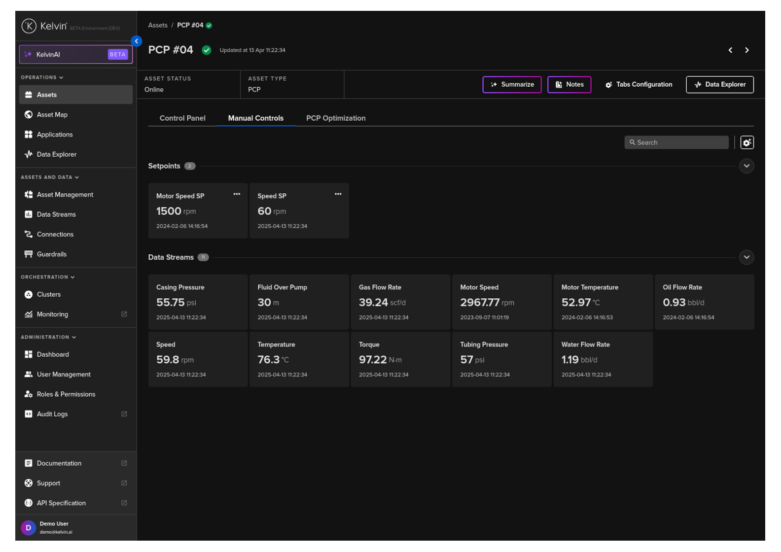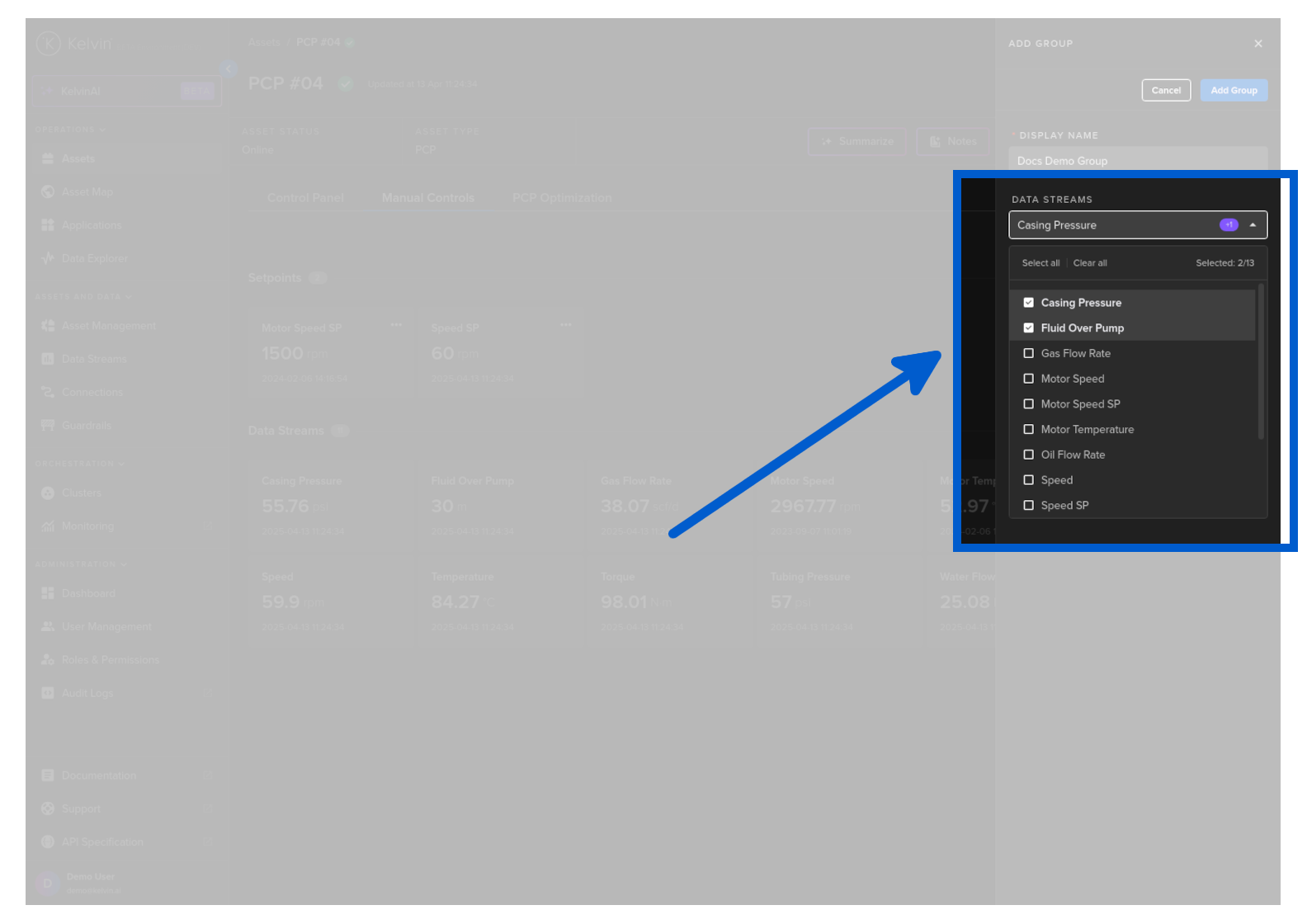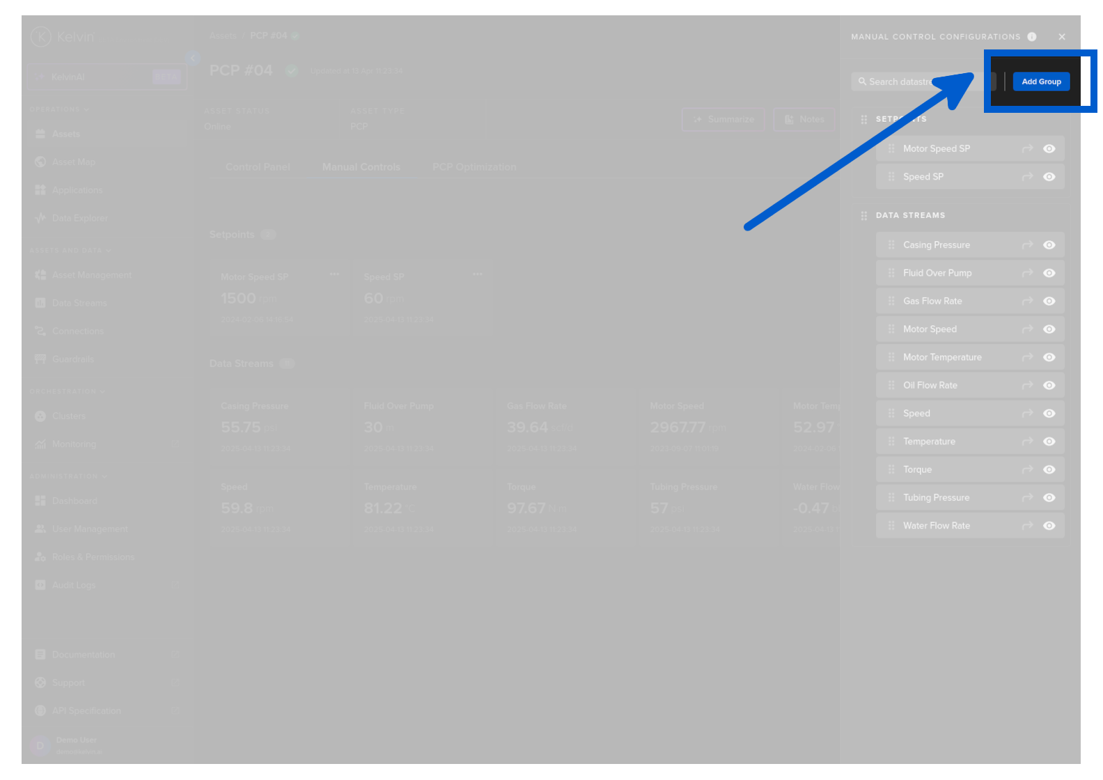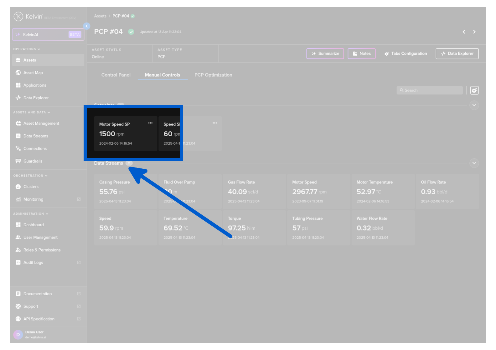 On this page you will learn about monitoring live values and changing values of Data Streams related to the selected Asset in Manual Controls in Kelvin UI.