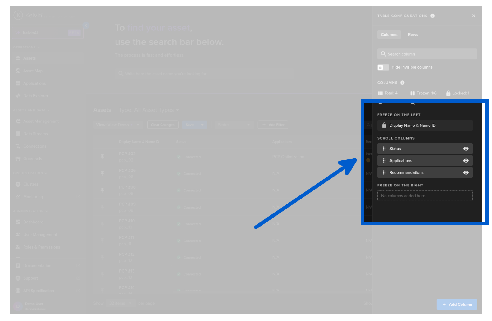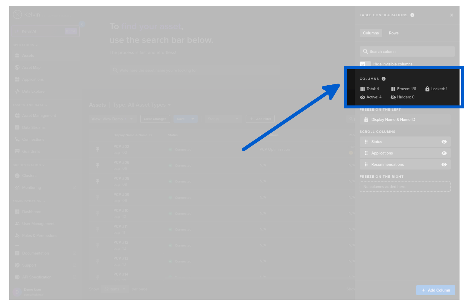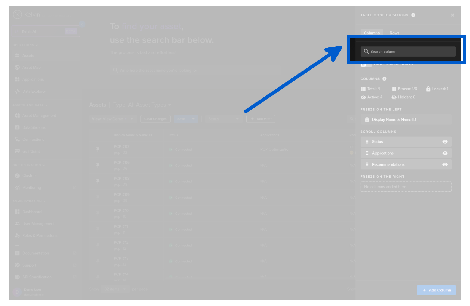 On this page you will learn about customizing the columns in the Assets Overview page in Kelvin UI.