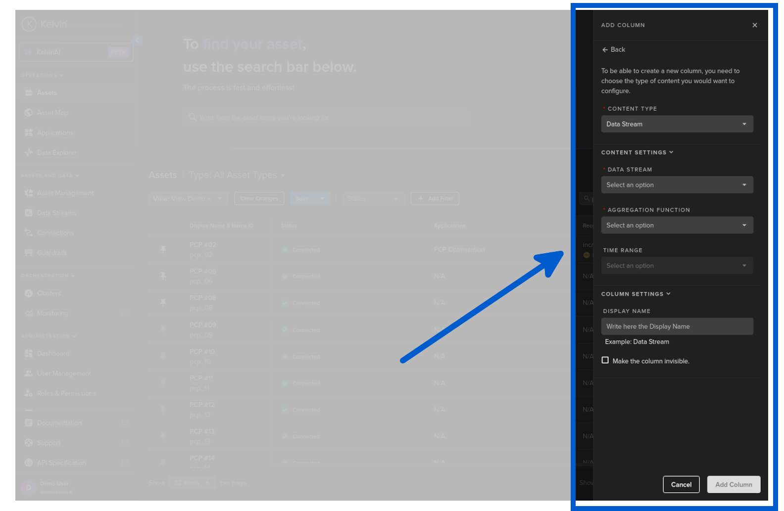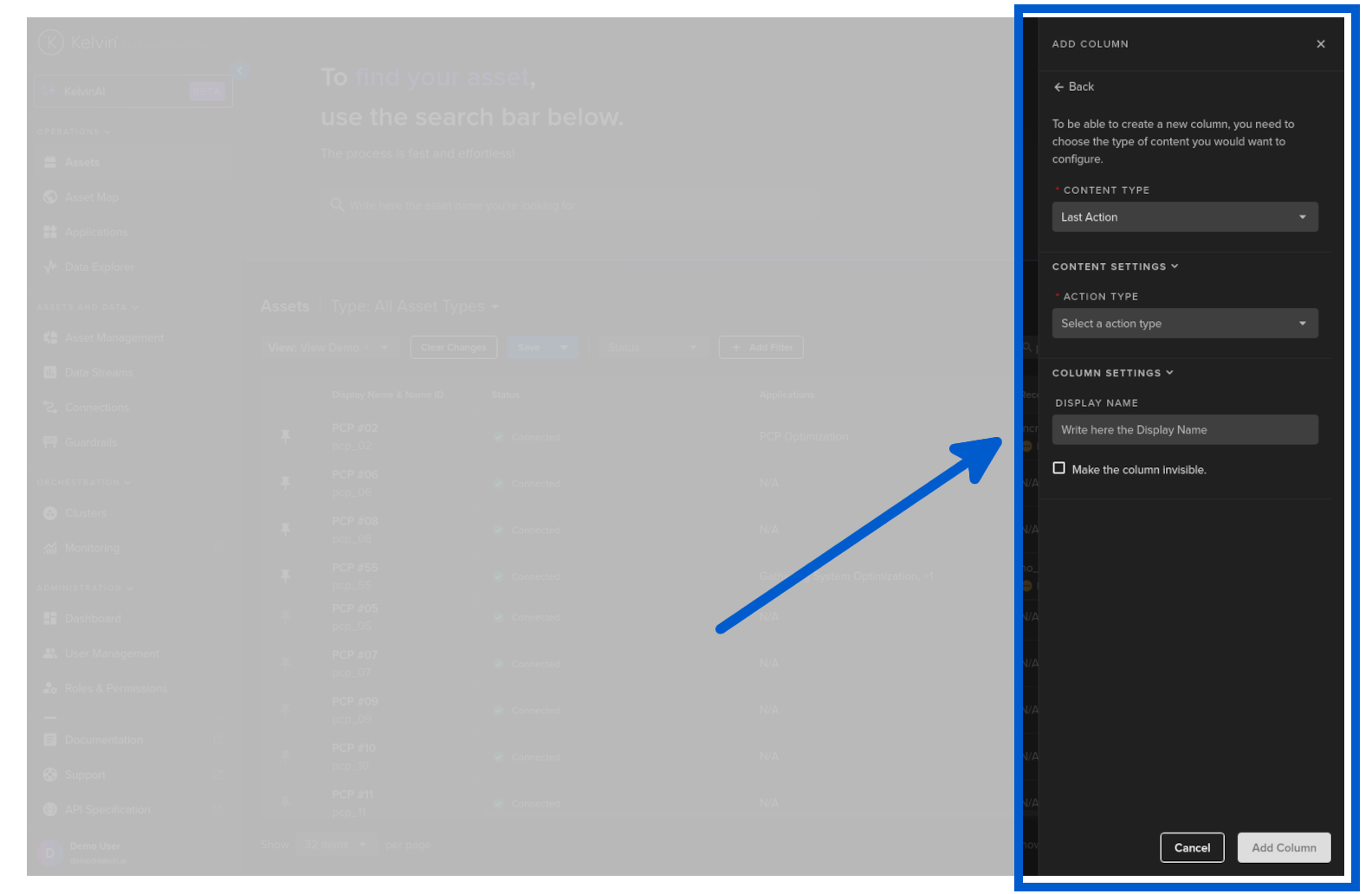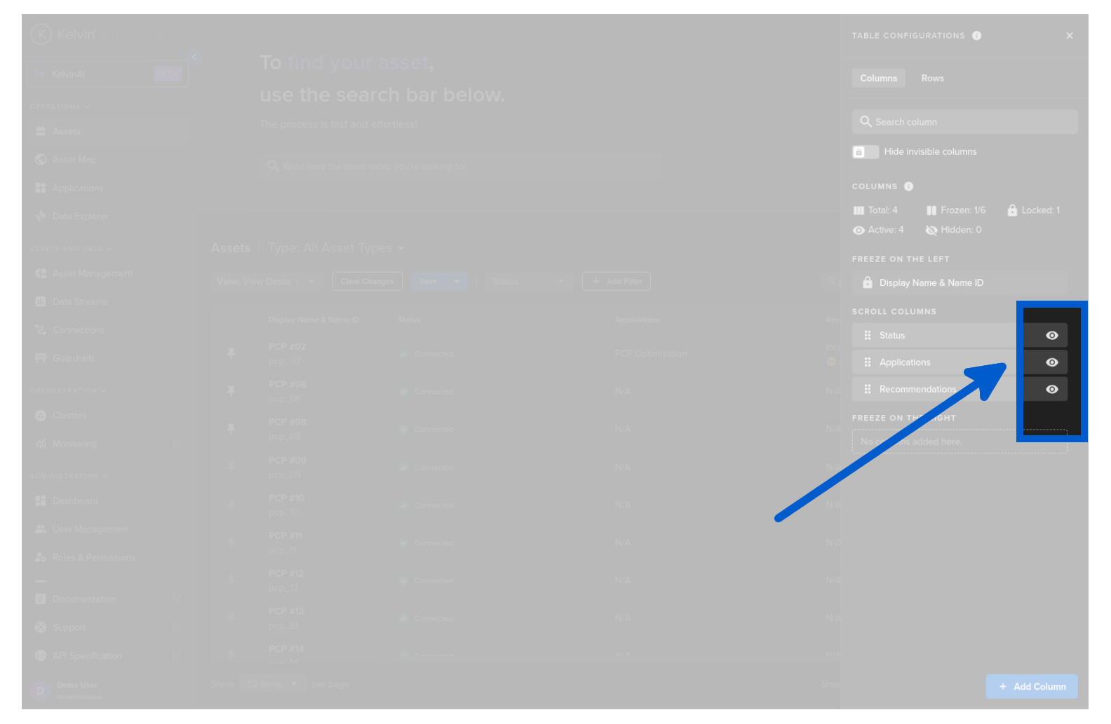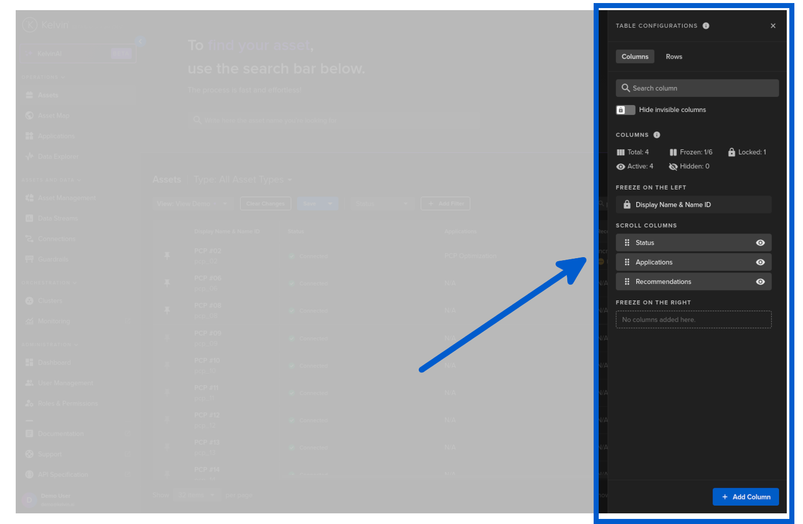 On this page you will learn about customizing the columns in the Assets Overview page in Kelvin UI.