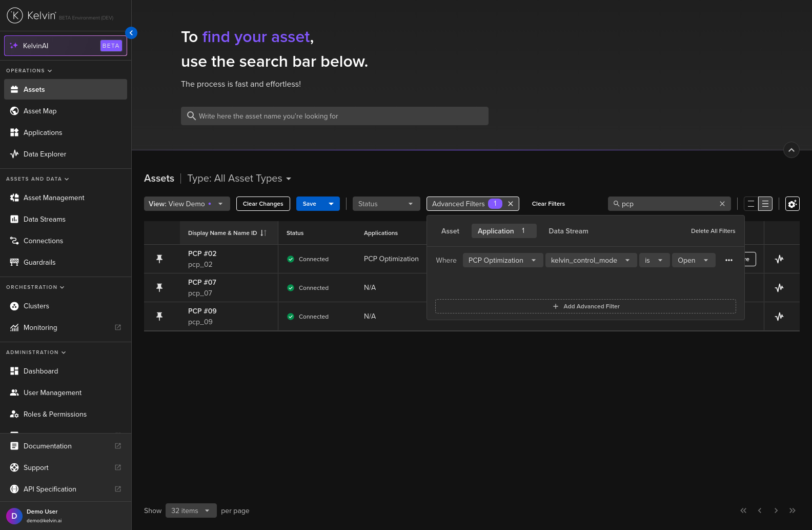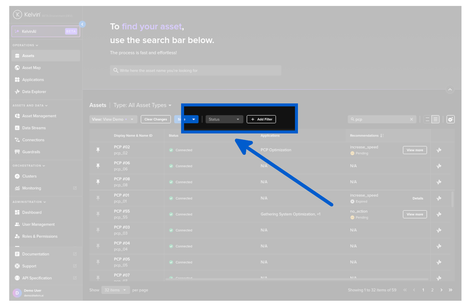- Apply advanced filters on Asset Properties or Kelvin SmartApps™