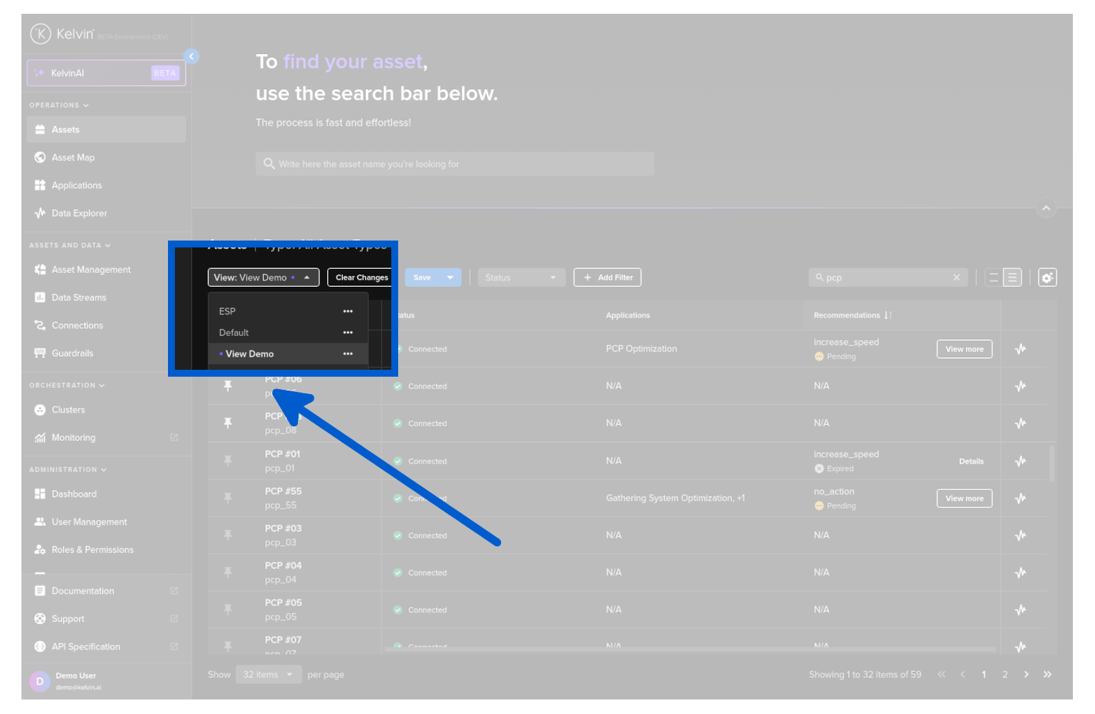 This uses the asset-centric table which is a highly optimized way to customize and view many kelvin-centric information related to the Assets that are relevant to you.