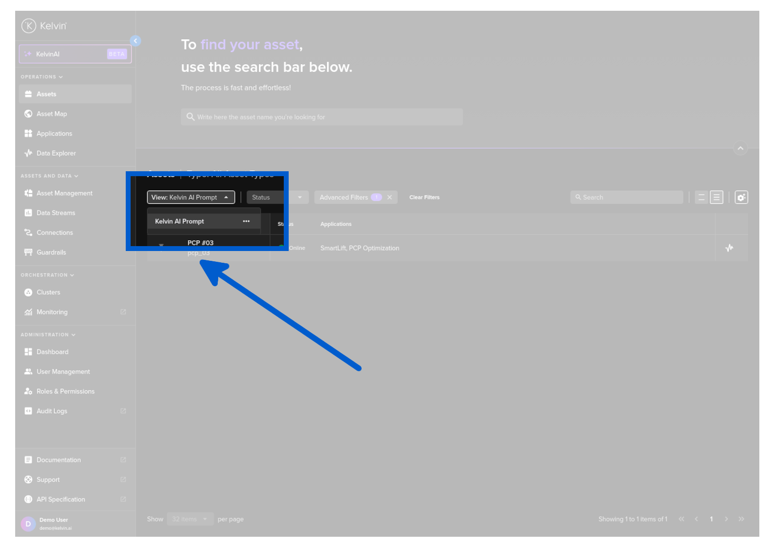 You can use Kelvin AI to quickly setup new filtered Asset Views through the prompt.