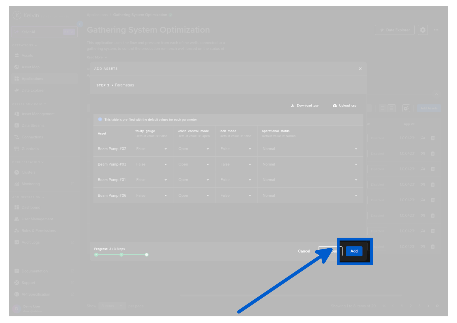 When satisfied with the App Parameter values, click the Add button.