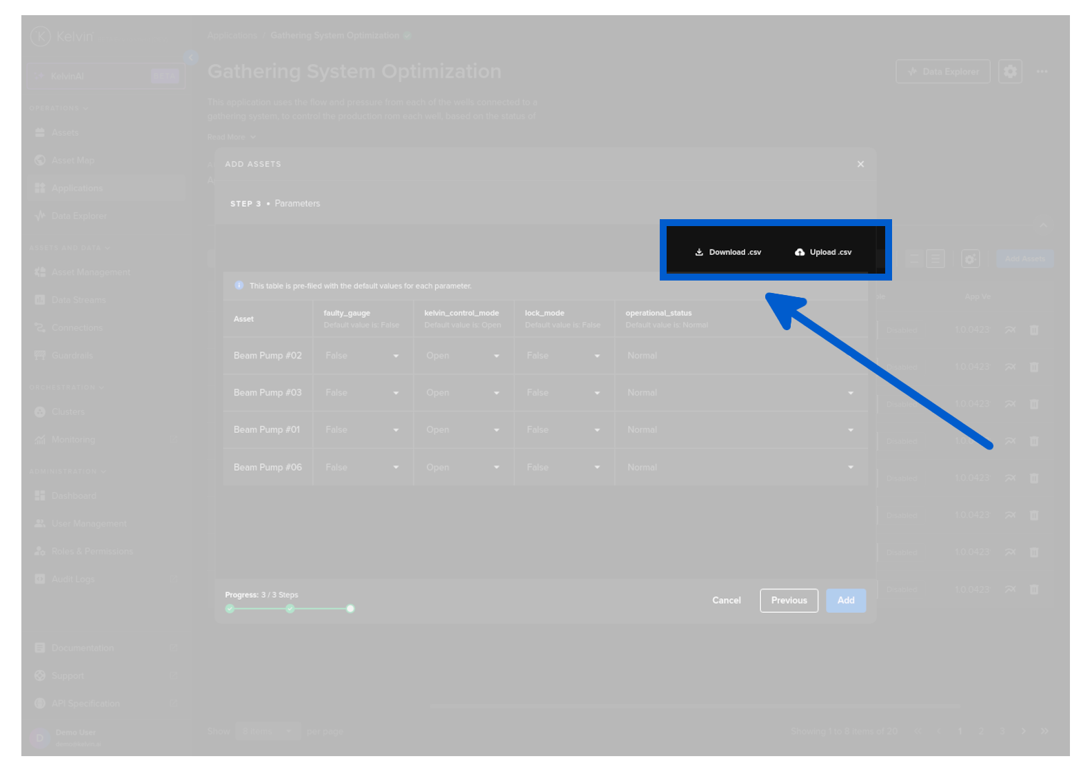 If you are adding many Assets, you can download the App Parameter list to you computer and edit them in Google Sheets or Microsoft Excel.