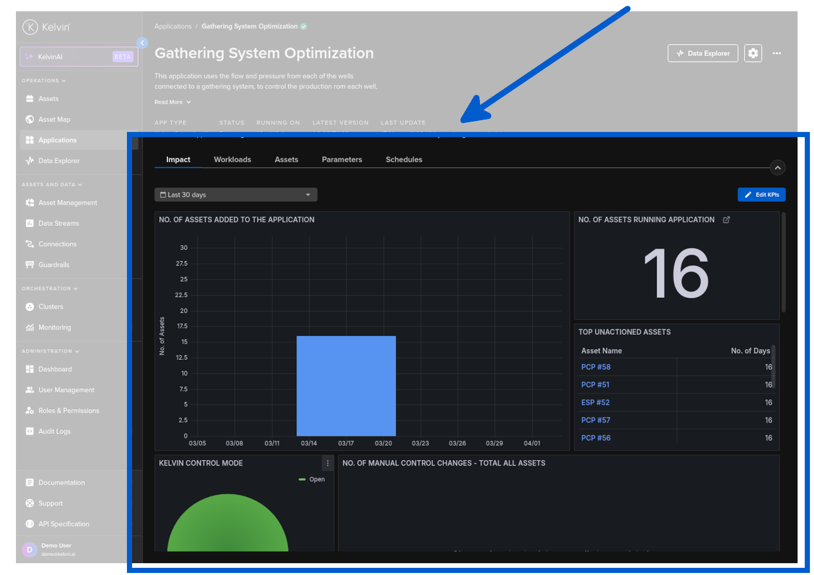The impact tab allows you to see an overview of the Kelvin SmartApp™.