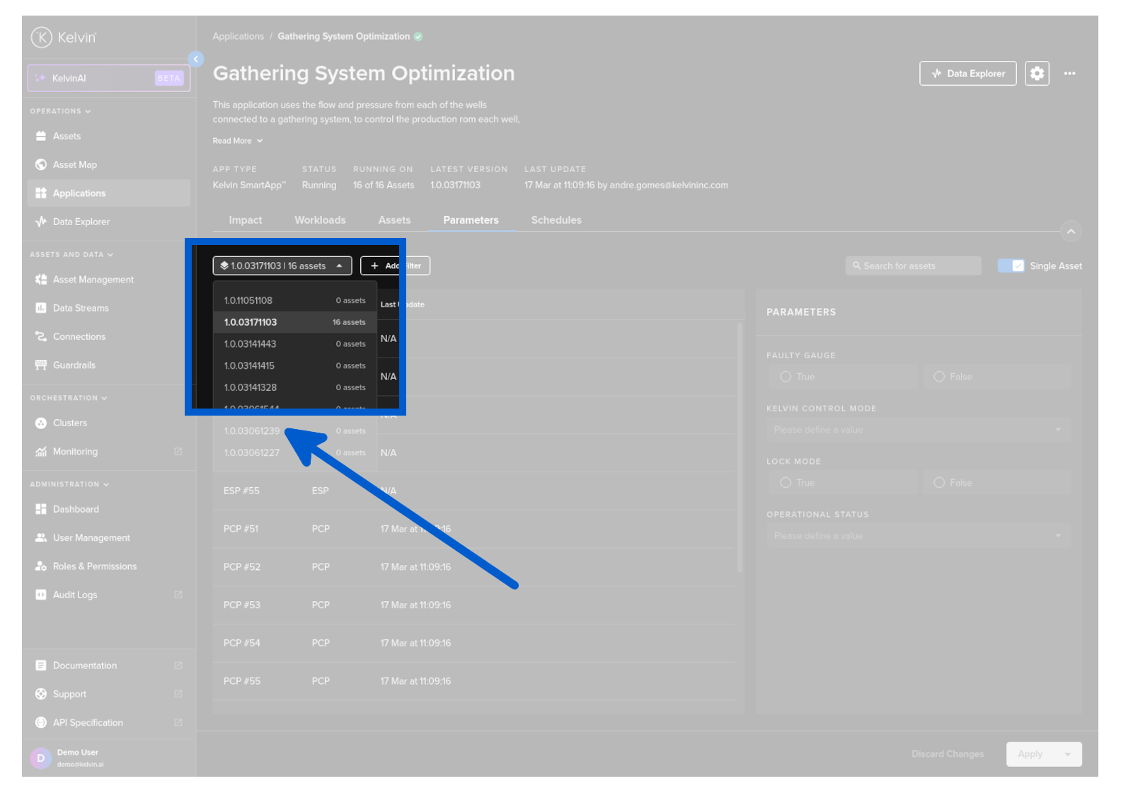 You can filter according to the App version. Only Assets deployed with this version will be displayed.