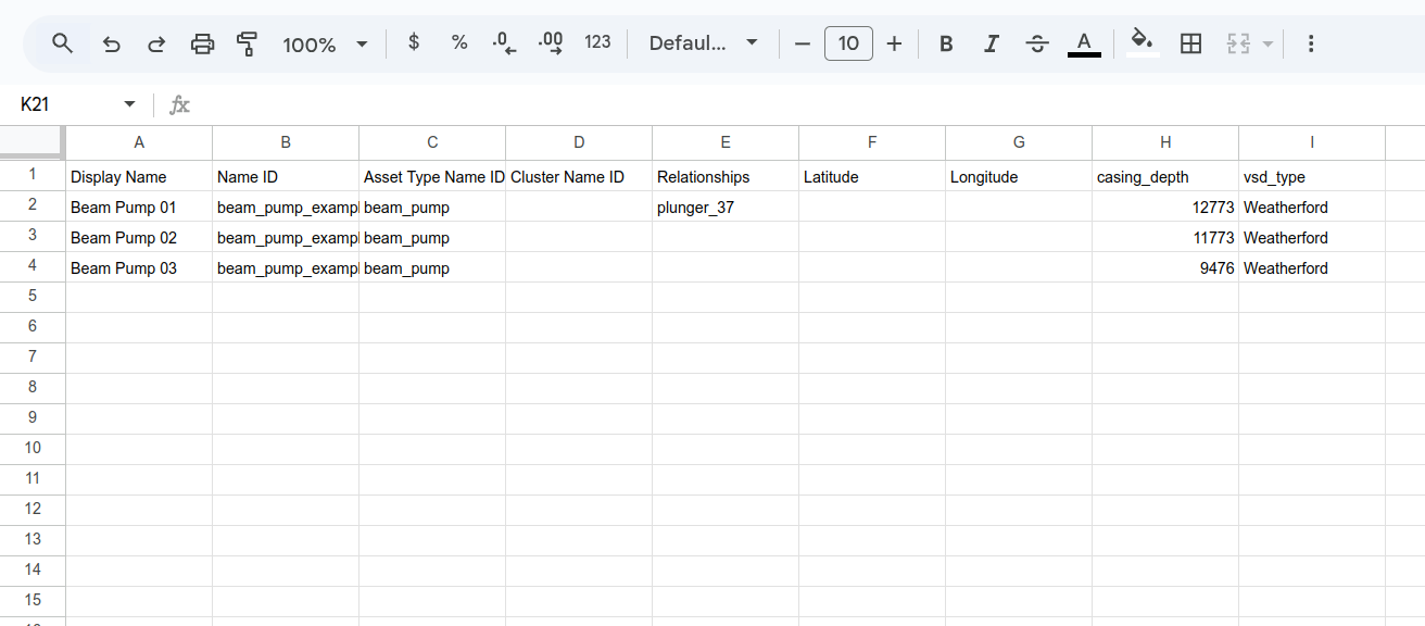 You can get the latest template from the Kelvin UI. Read further down to see where you can download the template. You can have as many headings after the Asset Type Name and each one will be treated as a new Asset Property.