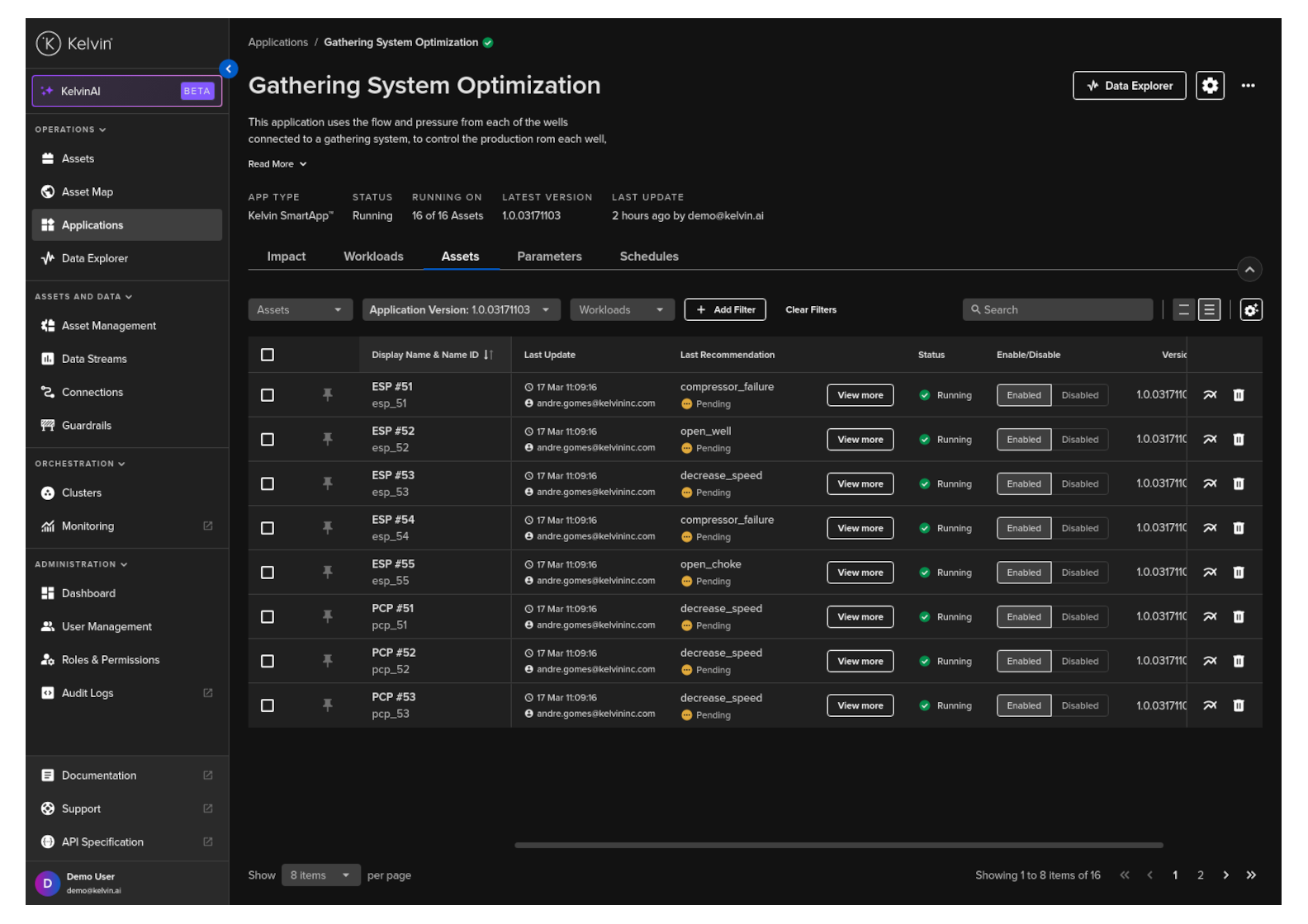 A Kelvin SmartApp™ can be processing many thousands of Assets at the same time. Kelvin UI makes it easy to monitor the status of all these Assets and quickly add or delete Assets to the Kelvin SmartApp™.