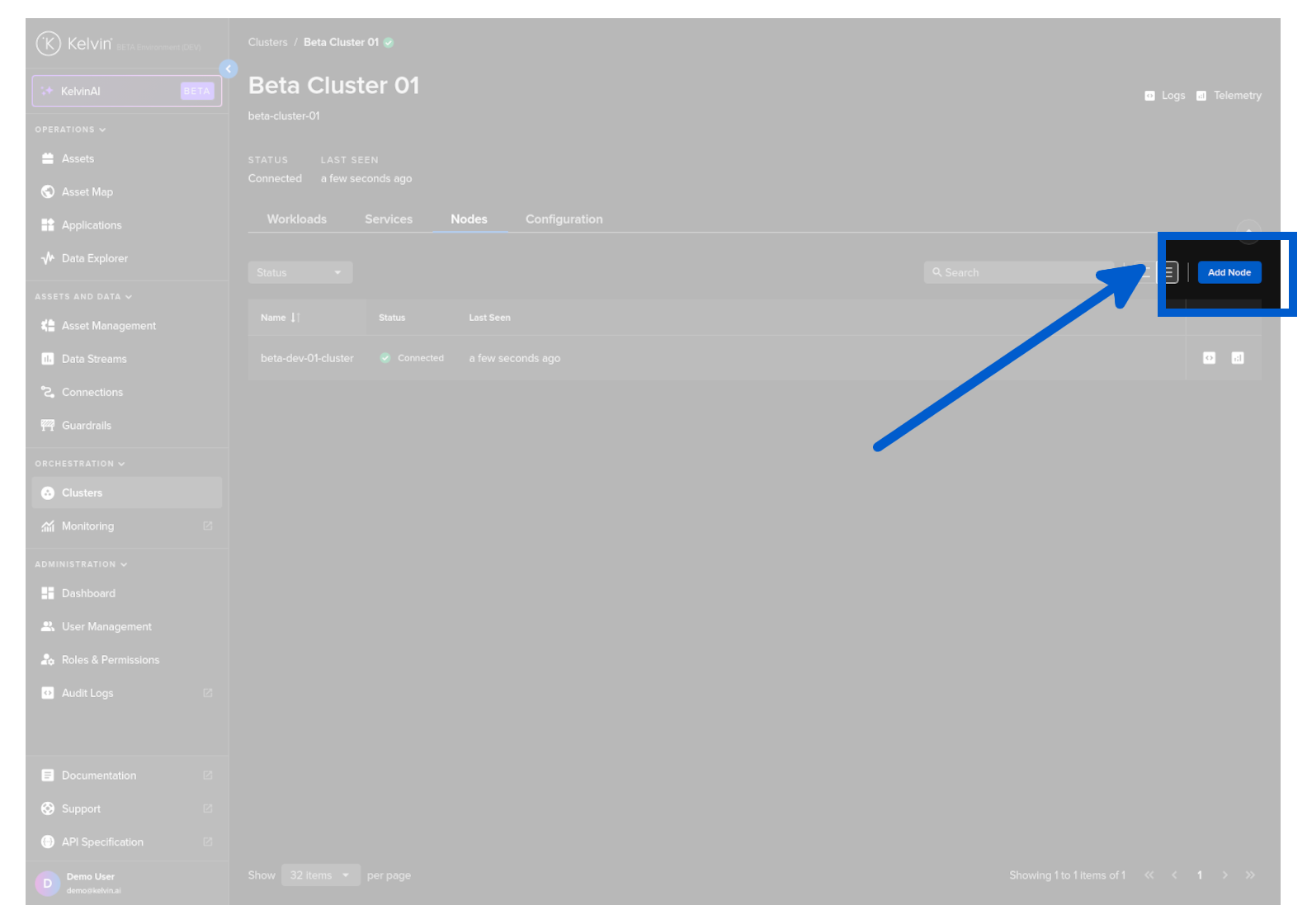 Then from Orchestration menu click on a single Cluster, then under the Nodes tab you click on the Add Node button.