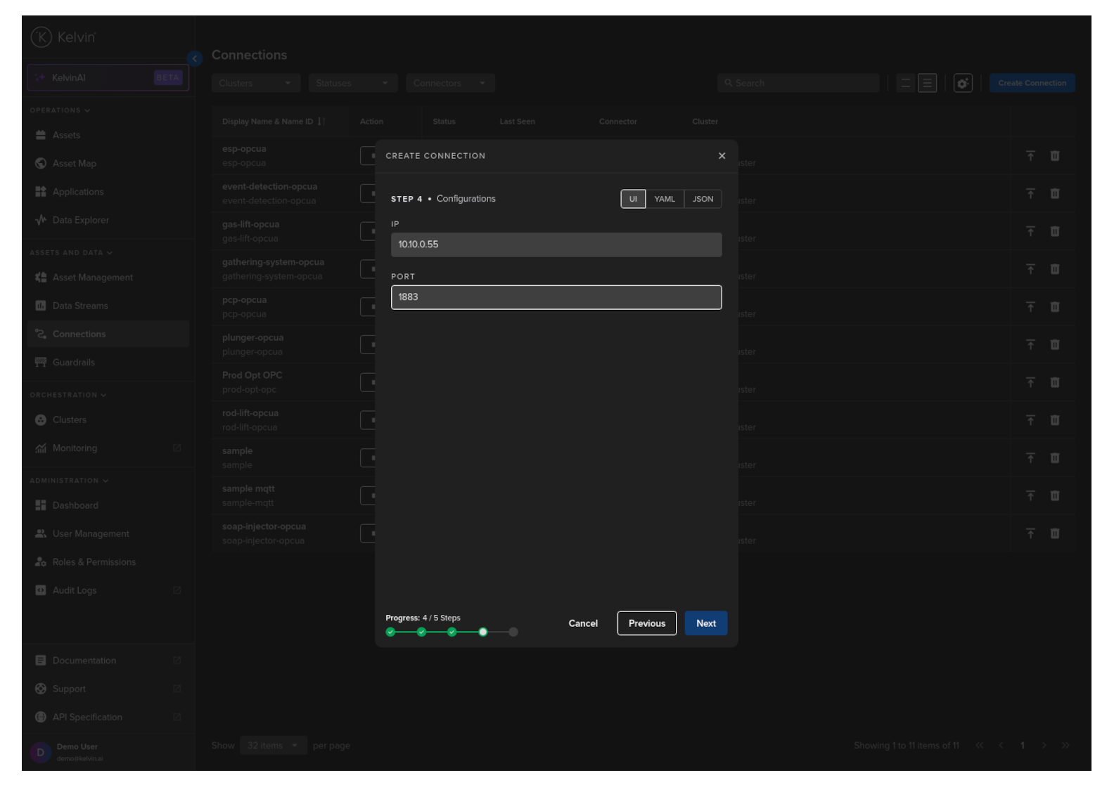 You can add a MQTT Connection through the Kelvin UI.