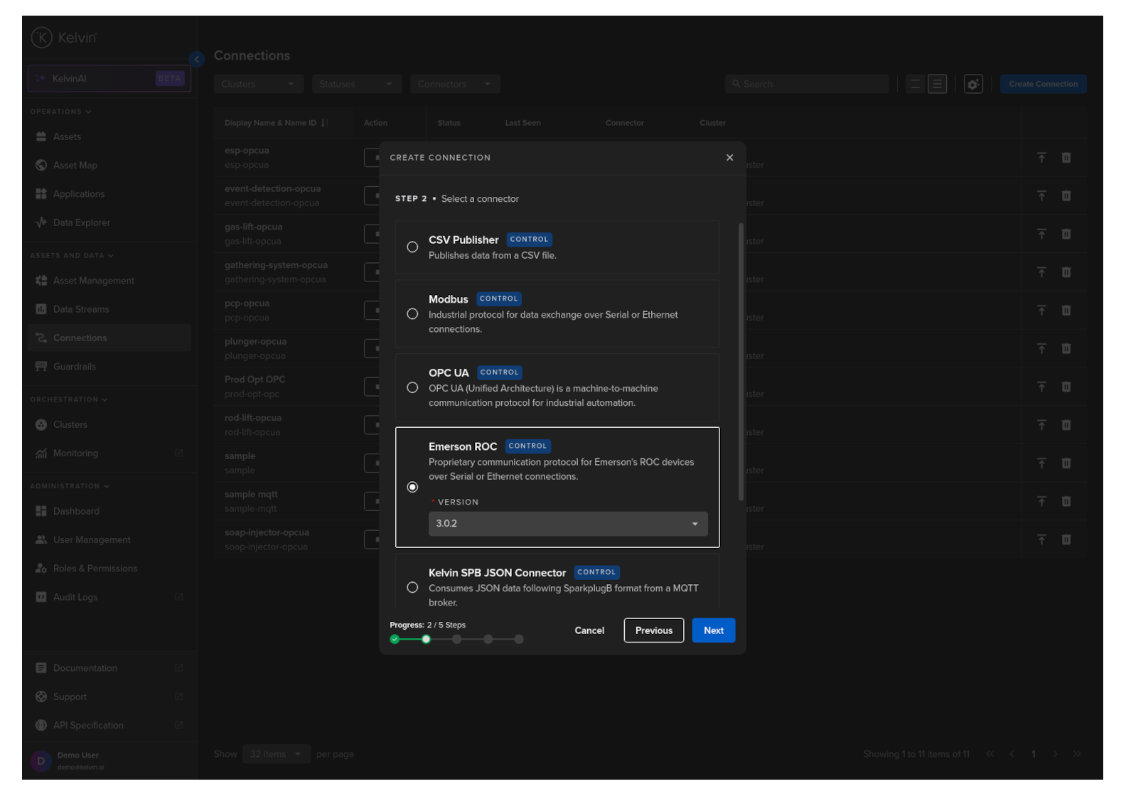 You can add an Emerson Operations Controller (ROC) connection through the Kelvin UI, Kelvin SDK and Kelvin API.