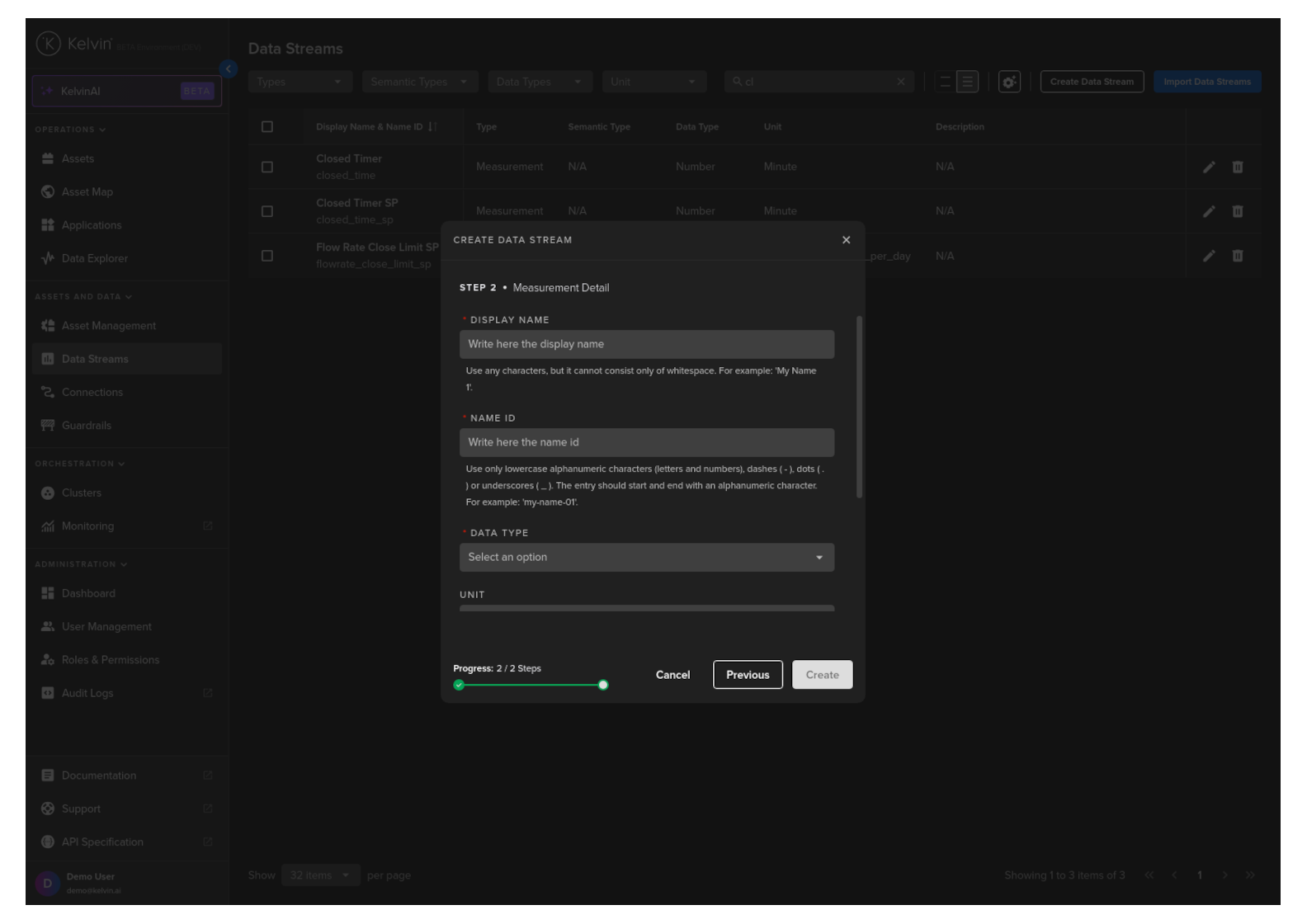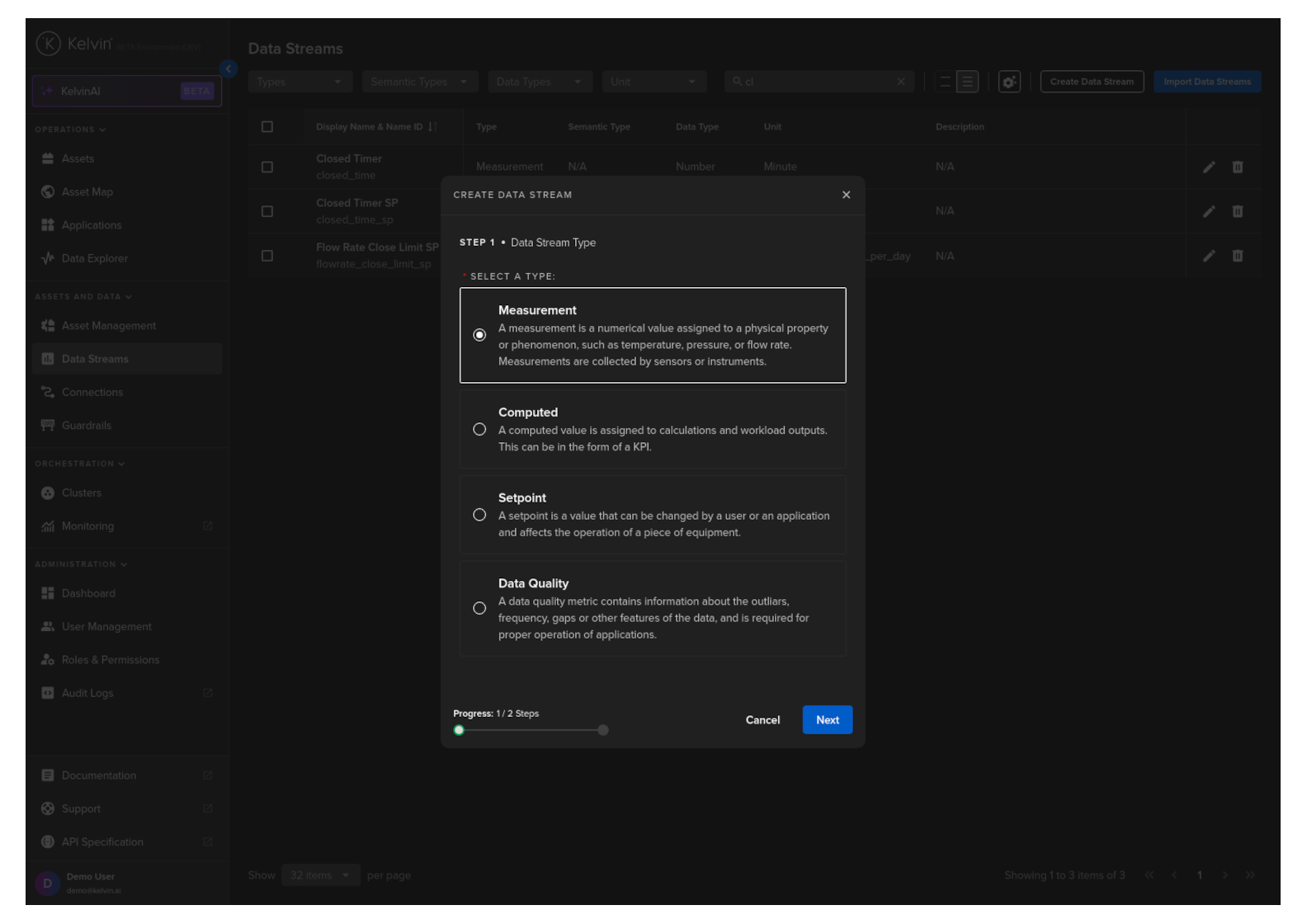 | Semantic Type | No | Provides context or deeper meaning behind the data, beyond just its format or structure. Check Kelvin API for the full list of available semantic types. |