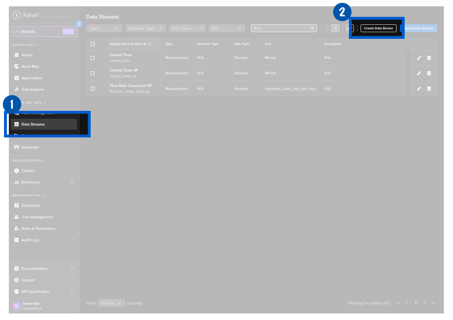 In this example we will create a Data Stream with the Semantic Type Pressure and with the name tubing_pressure.
