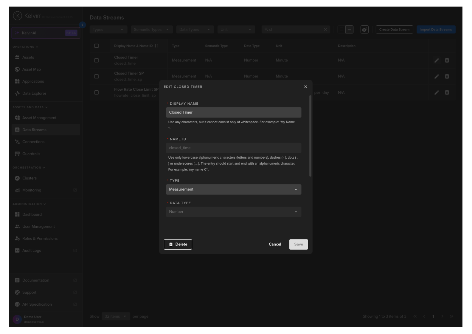 | Semantic Type | No | Provides context or deeper meaning behind the data, beyond just its format or structure. Check Kelvin API for the full list of available semantic types. |