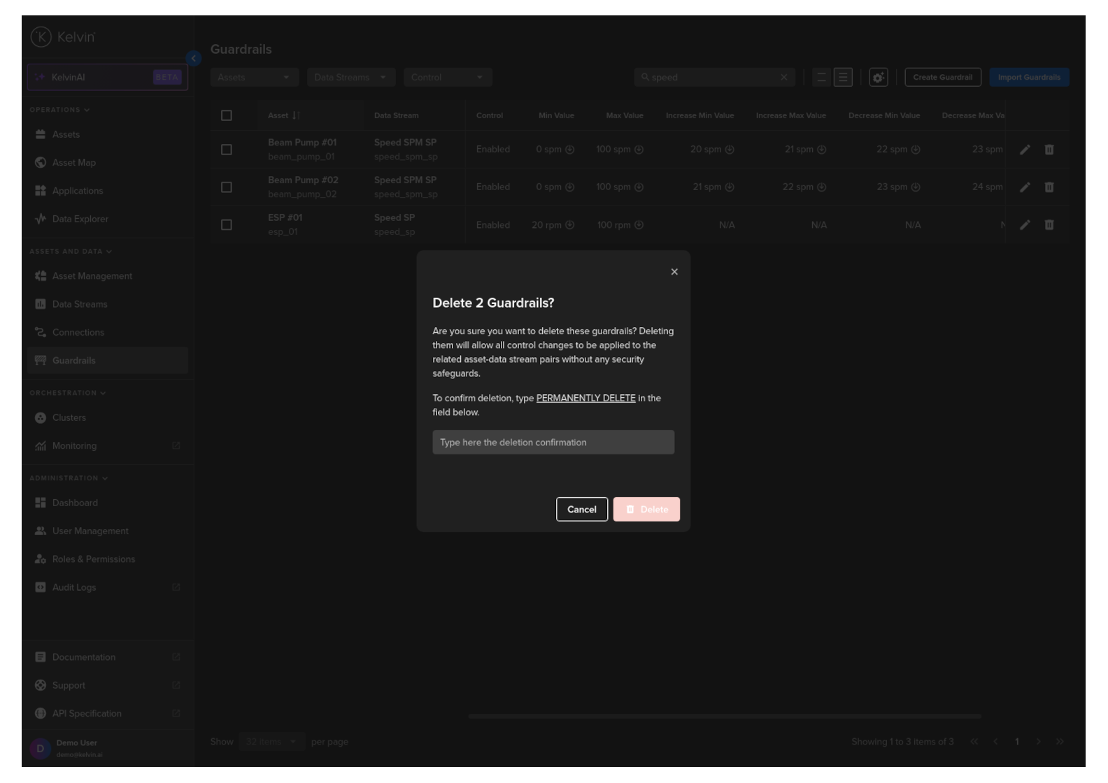 Congratulations, you have delete multiple Asset / Data Stream pair Guardrails.