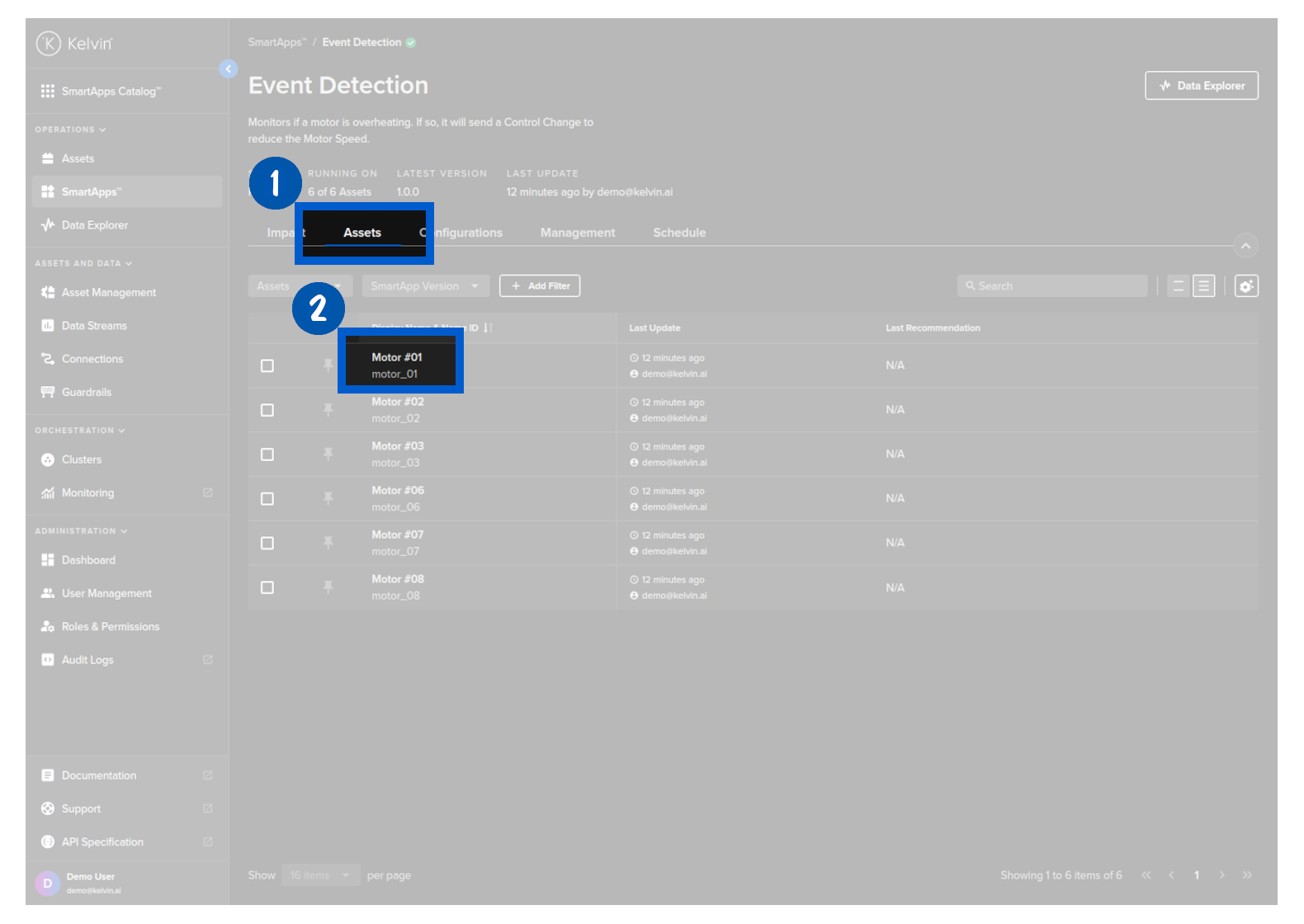 To do this, go to the Assets tab and click on the asset you want to visualize the data. This will open Data Explorer with the asset automatically selected.