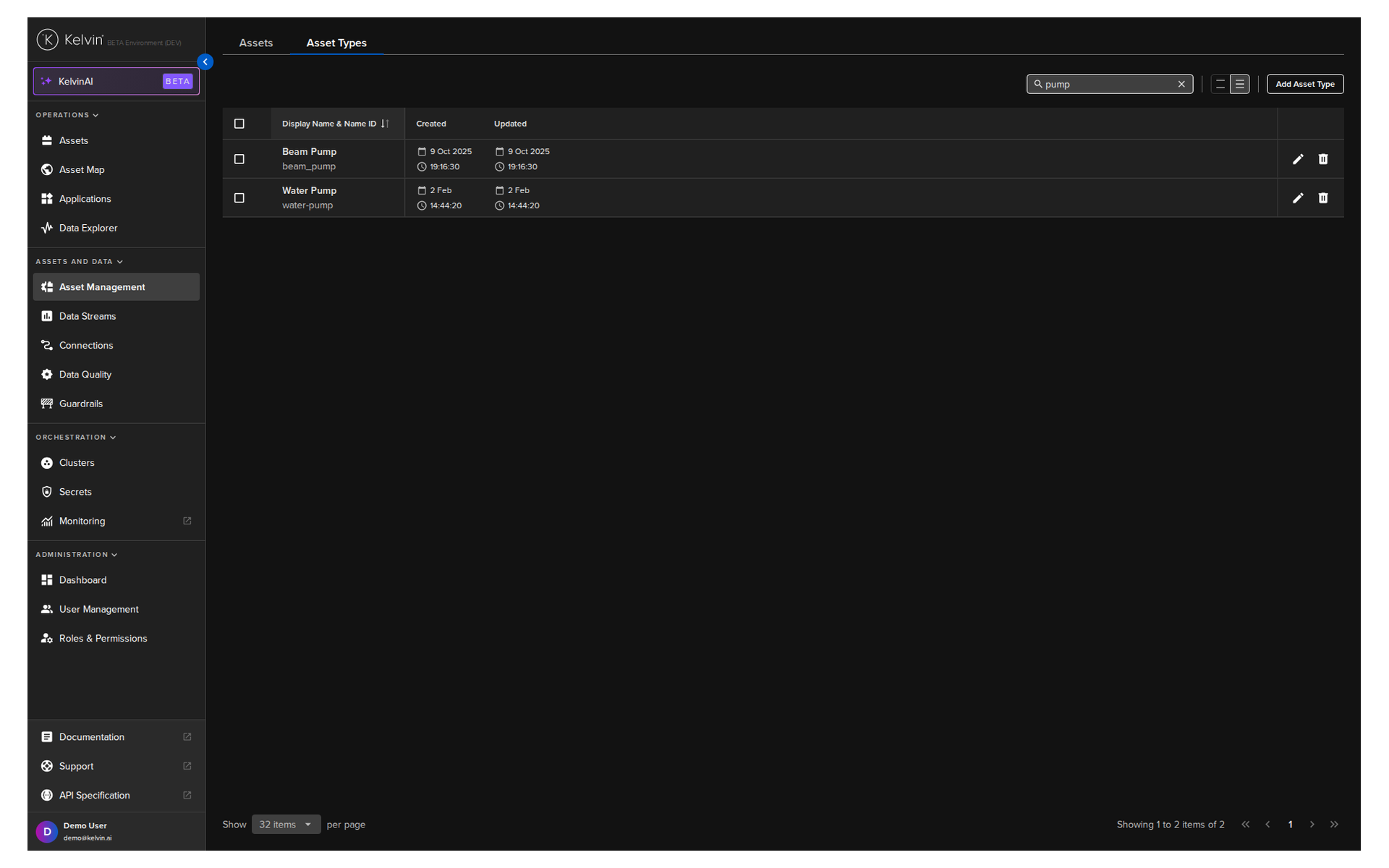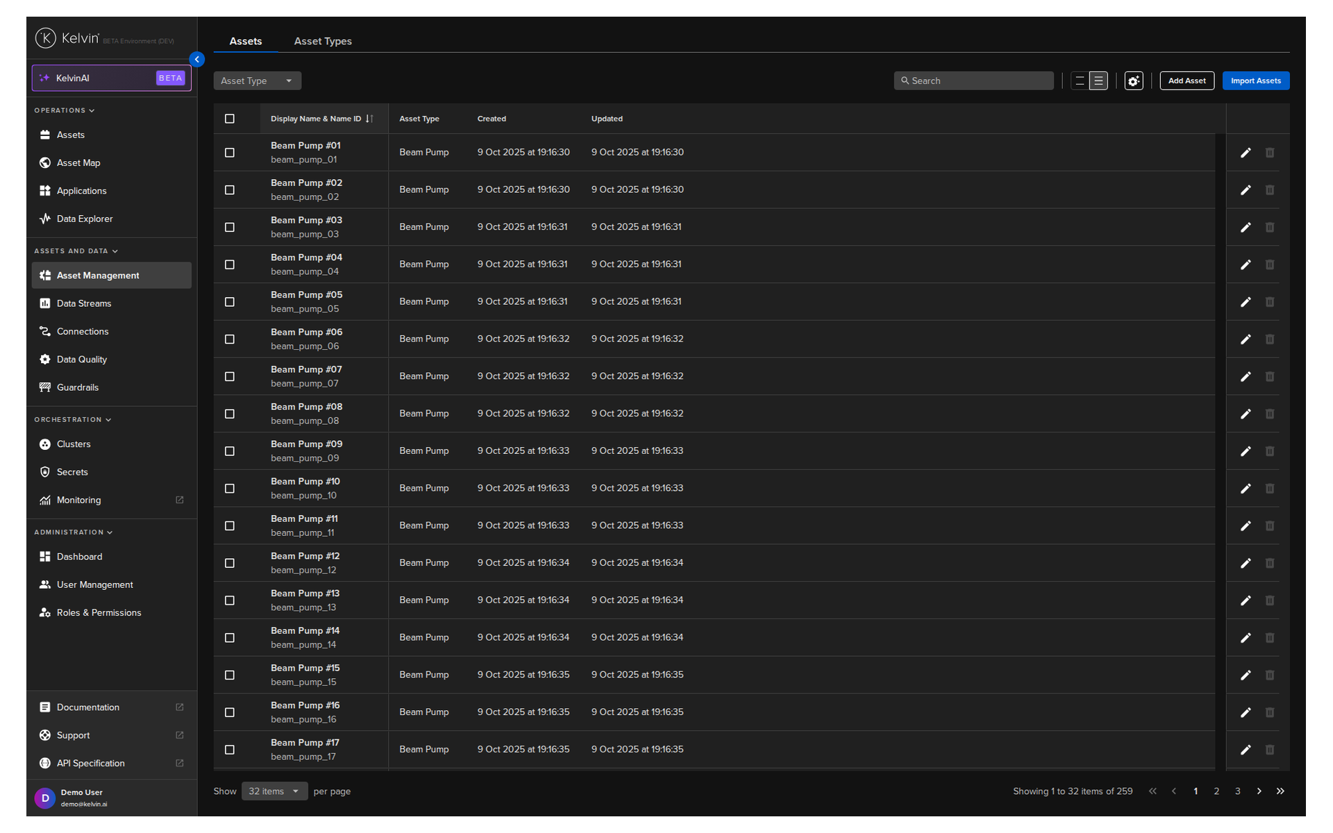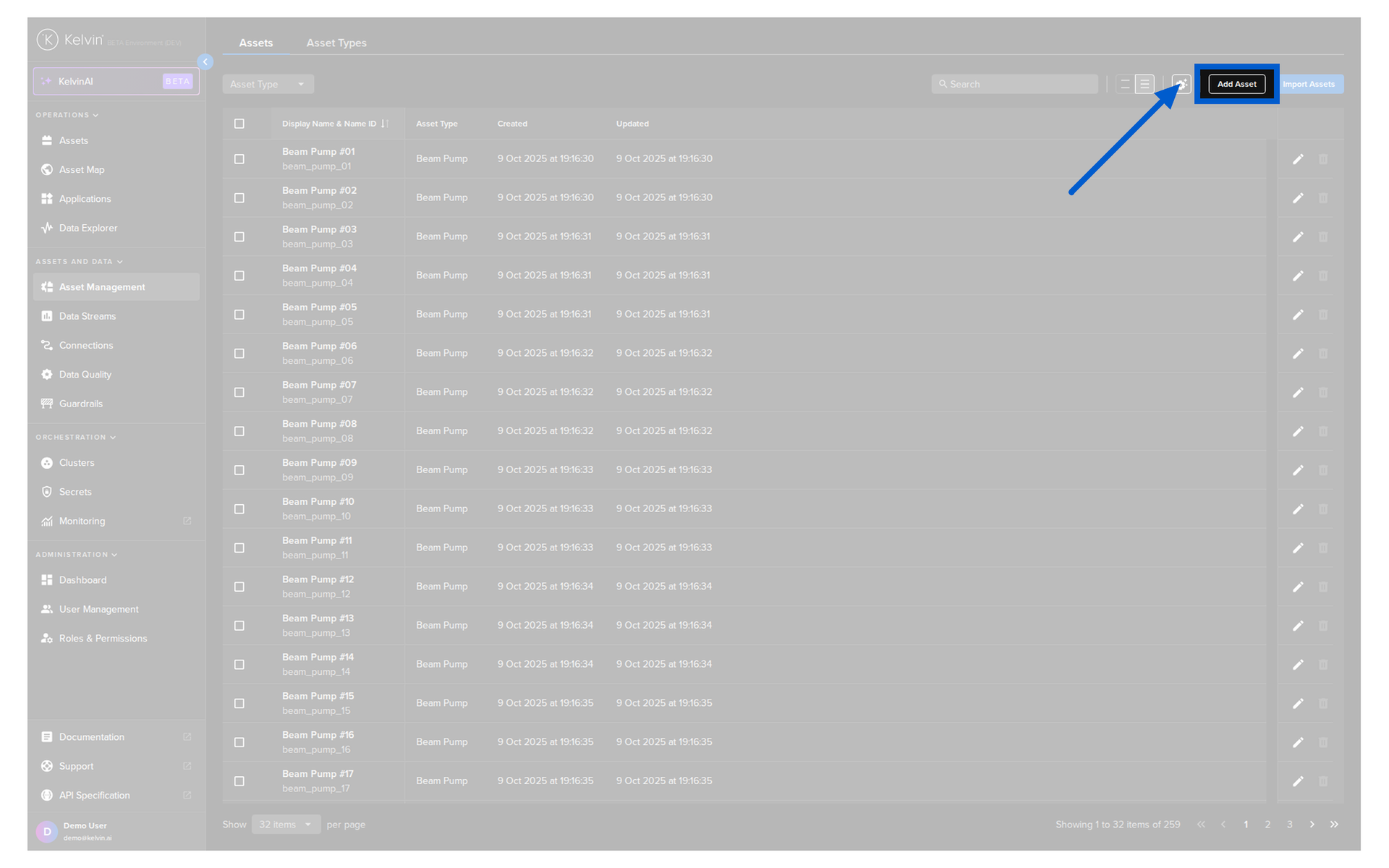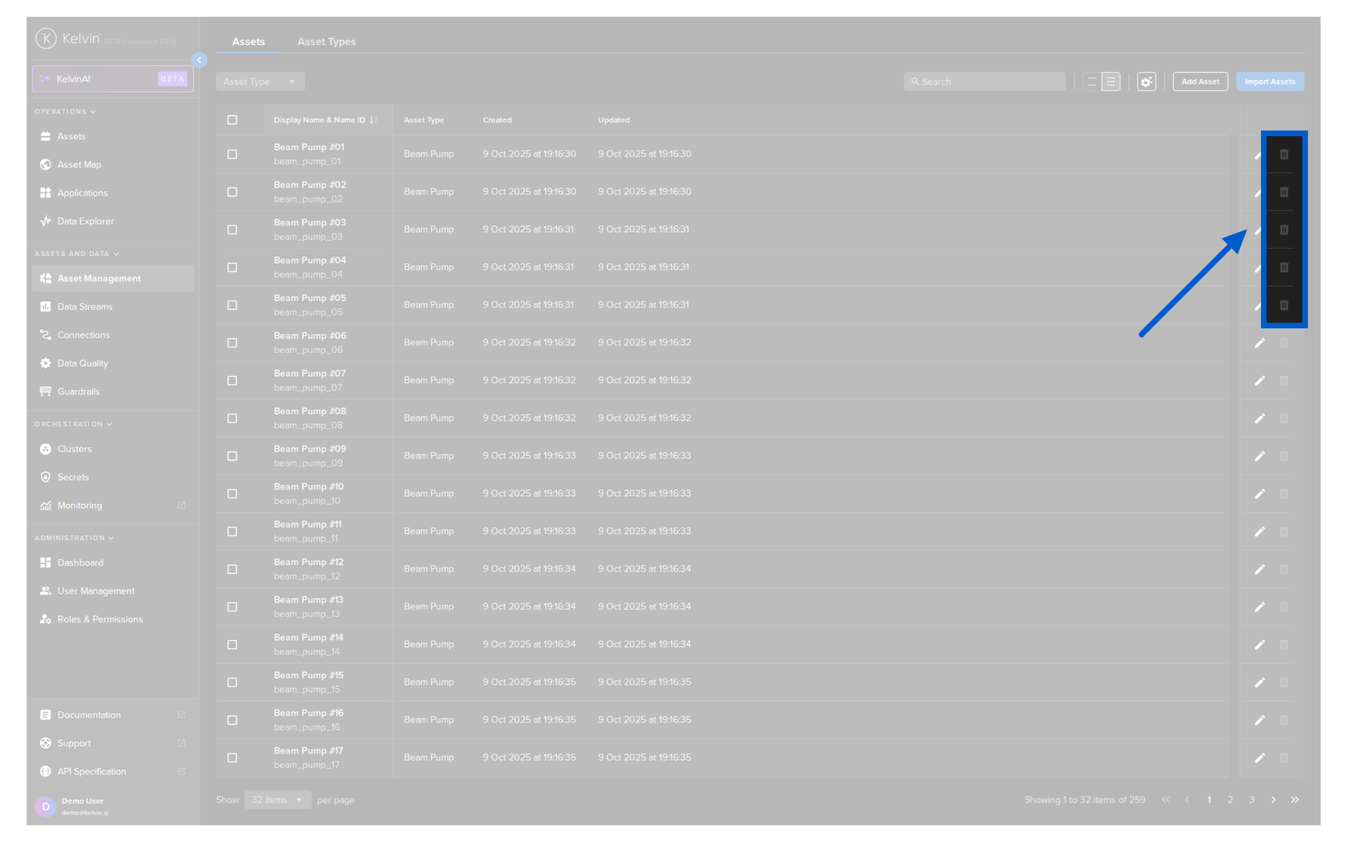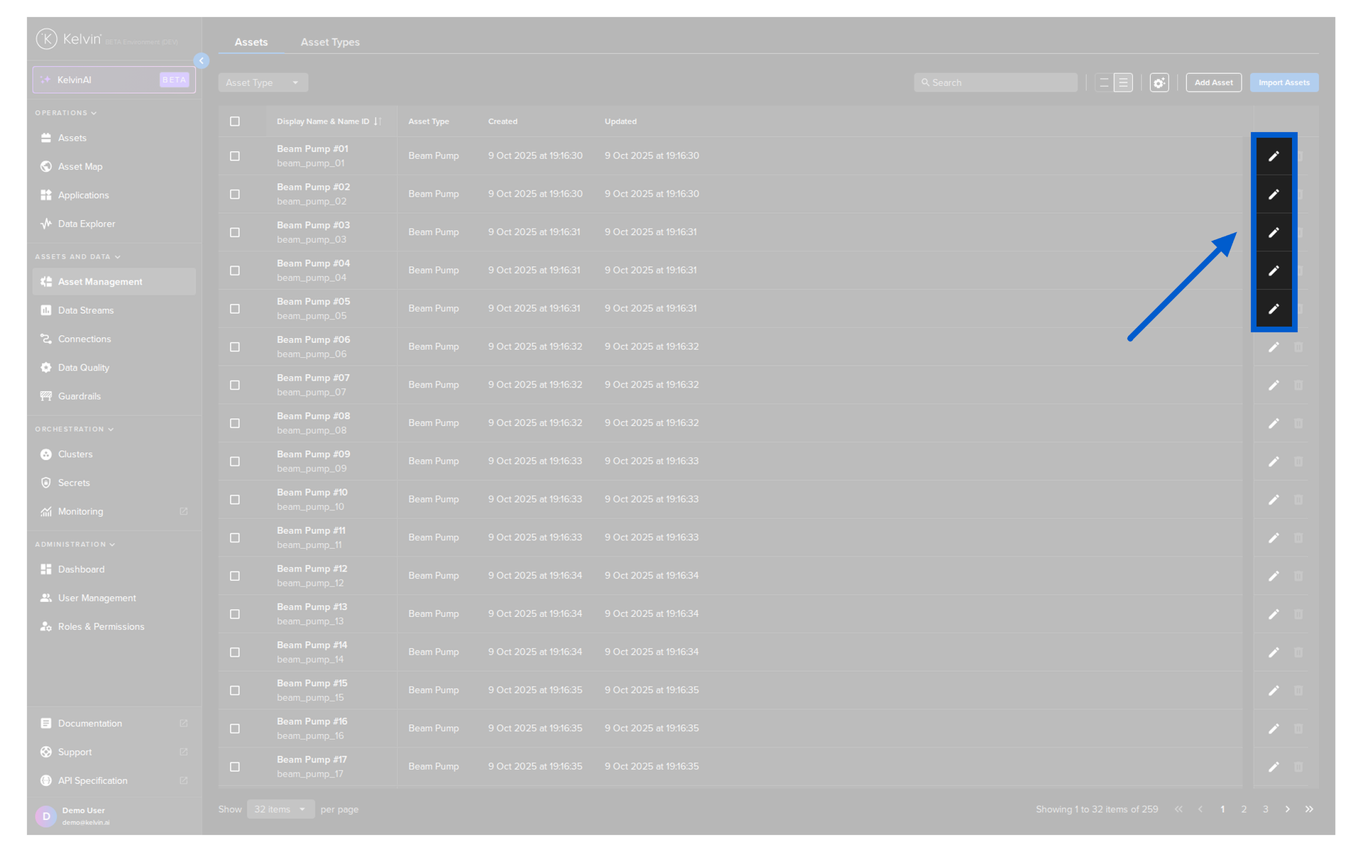 Through Kelvin UI, users can seamlessly manage the following Asset functionalities: