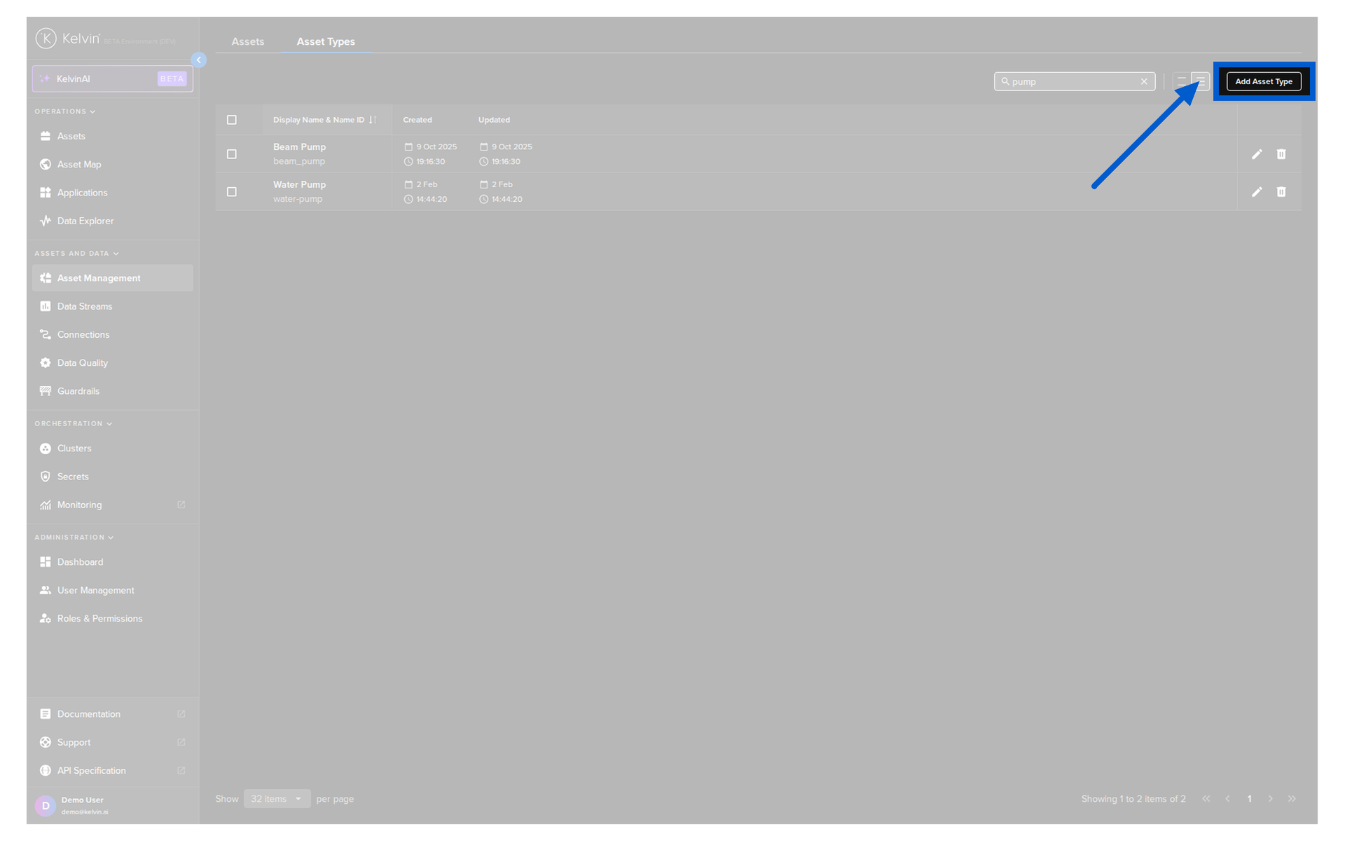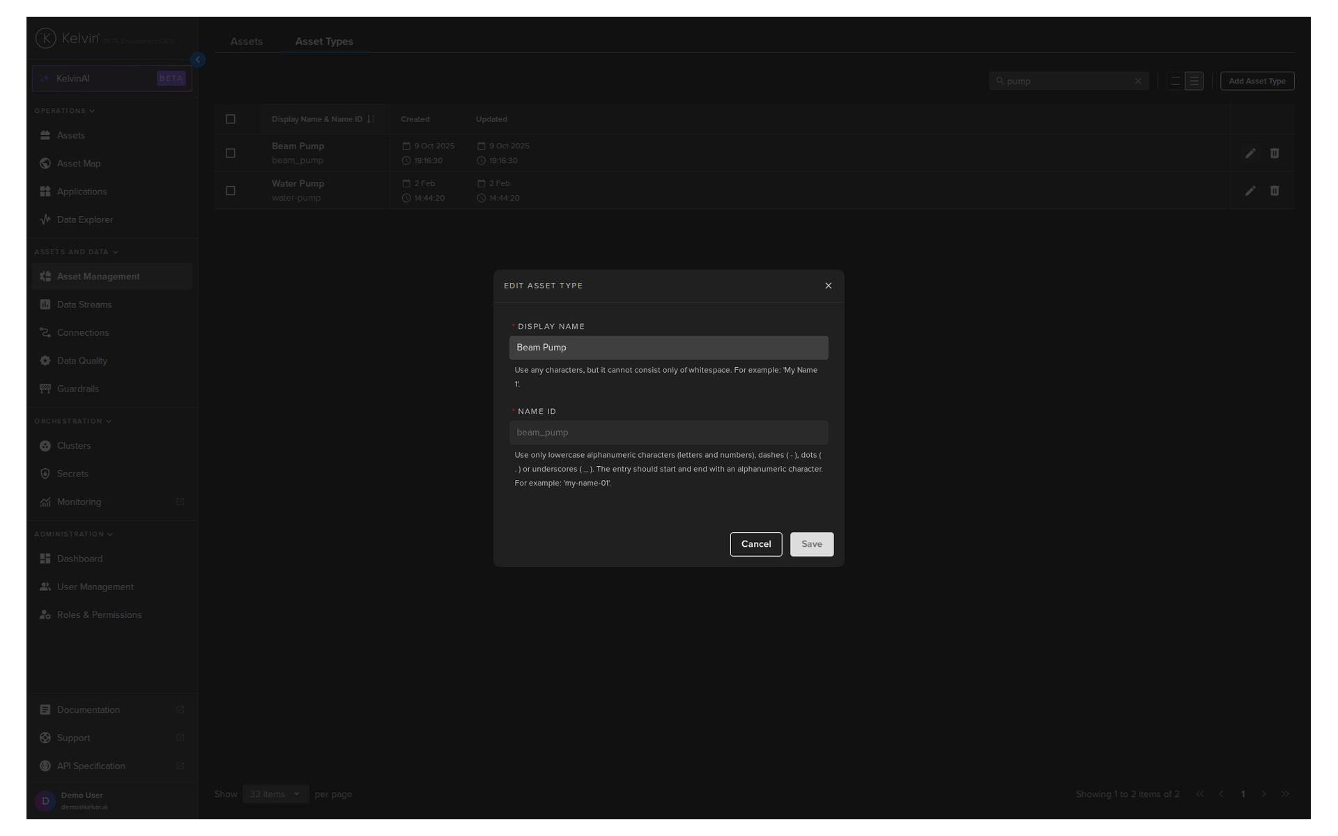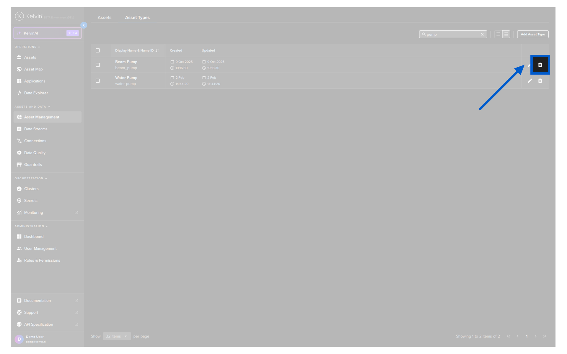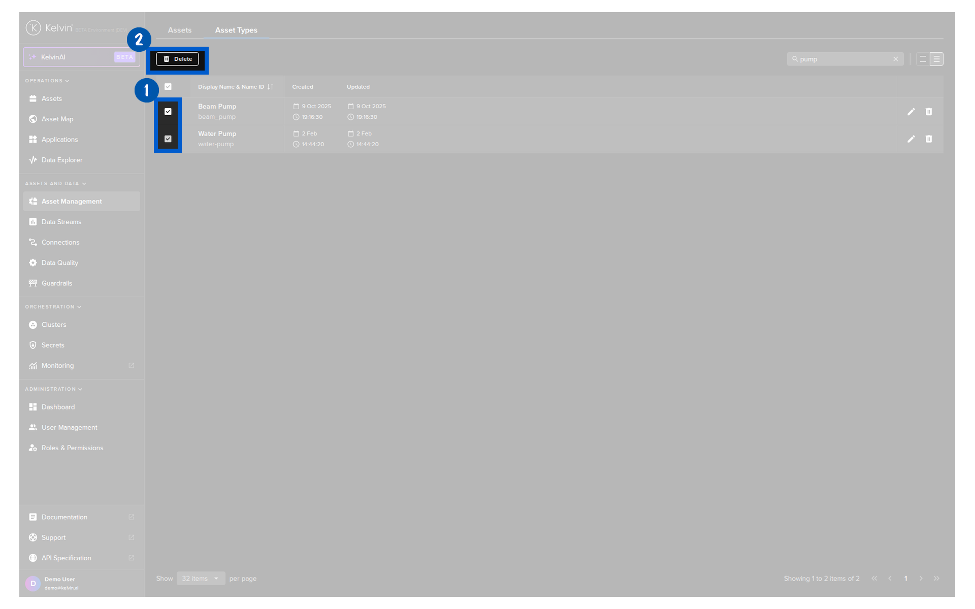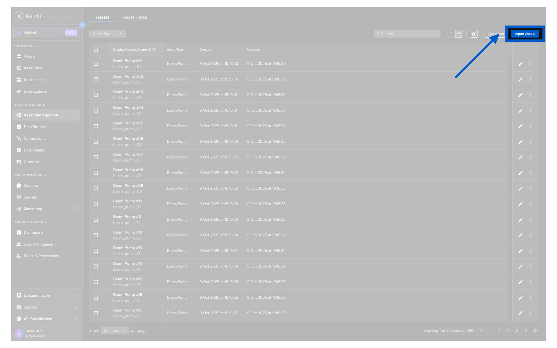 Through Kelvin UI, users can seamlessly manage the following Asset functionalities: