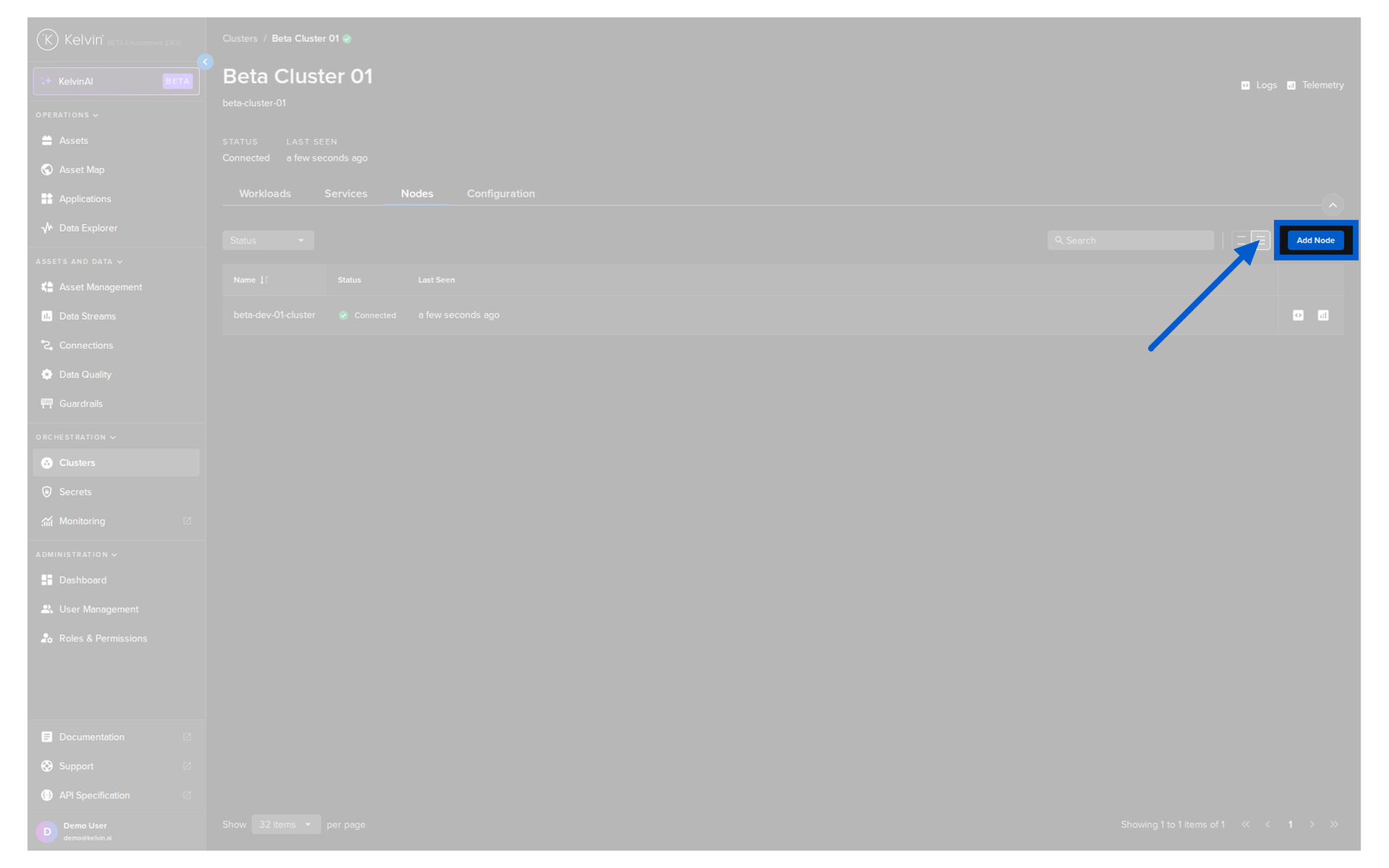 - When all configurations are completed successfully, then the status for the Node in the Kelvin UI will change from Disconnected to Connected.